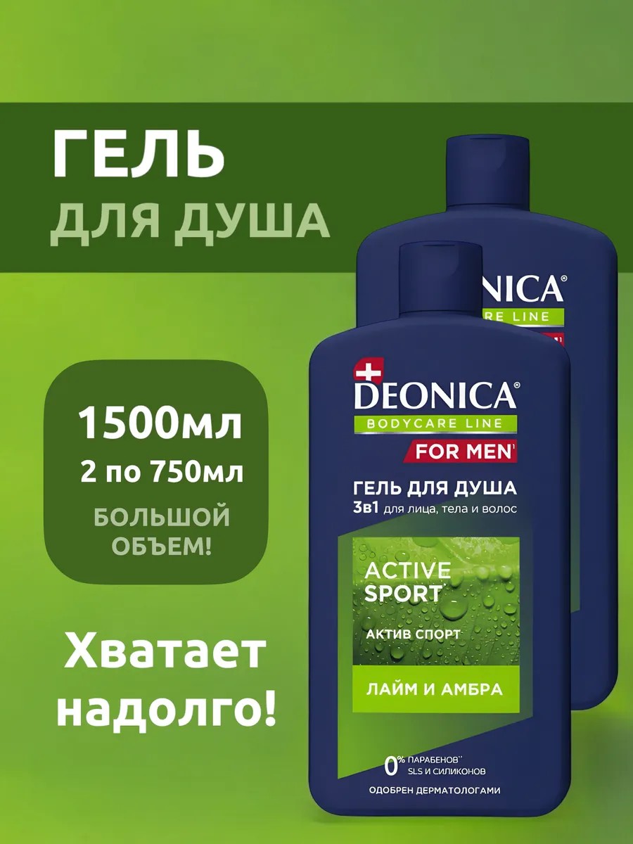 Гель для душа и шампунь Deonica Active Sport 3 в 1 — это идеальное решение для очищения лица, тела и волос, разработанное специально для мужчин, но подходящее для всей семьи. С ароматом лайма и амбры, этот мужской гель дарит заряд энергии и свежести на весь день, помогая взбодриться и настроиться на активность.