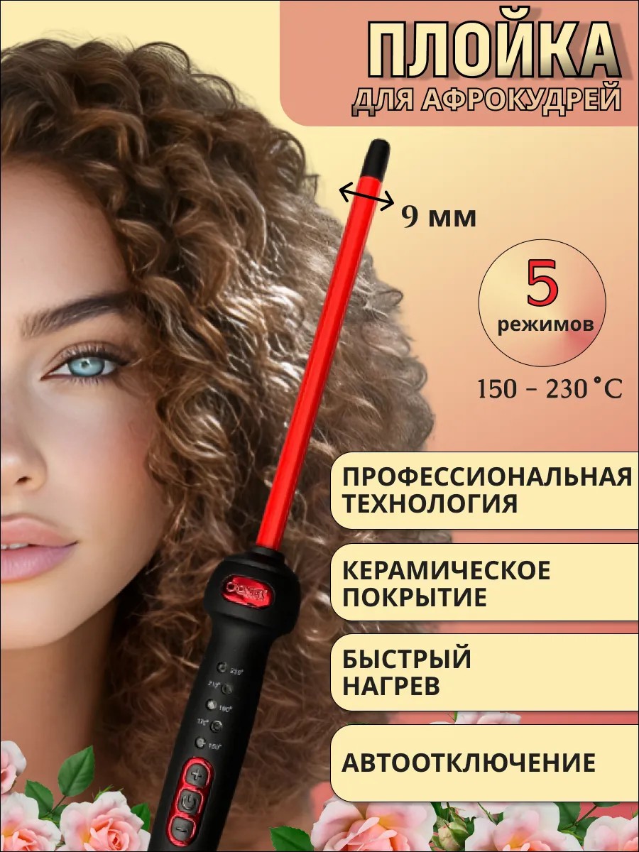 Плойка для локонов с тонким нагревательным элементом 9 мм идеально подходит для создания завивок и укладок. Стайлер для афрокудрей легко поможет сделать роскошную укладку, добавив объема и текстуры вашей прическе. Этот современный прибор позволяет получить кудрявые завитки, которые будут выглядеть естественно и стильно. Плойка для волос без зажима оснащена керамико-турмалиновым покрытием, что обеспечивает их защиту и придает им блеск. Разнообразные настройки температуры позволяют адаптировать использование щипцов для кудрей к любому типу волос, включая тонкие и поврежденные. Длина шнура в 1,8 метра обеспечивает свободу движений во время укладки, а функция автоотключения через 60 минут гарантирует безопасность. Стайлер щипцы для завивки станут вашим надежным помощником как для профессионального, так и для домашнего использования, позволяя создавать шикарные укладки с минимальными усилиями. Обновите свой стиль с этим многофункциональным прибором и наслаждайтесь здоровыми и красивыми локонами