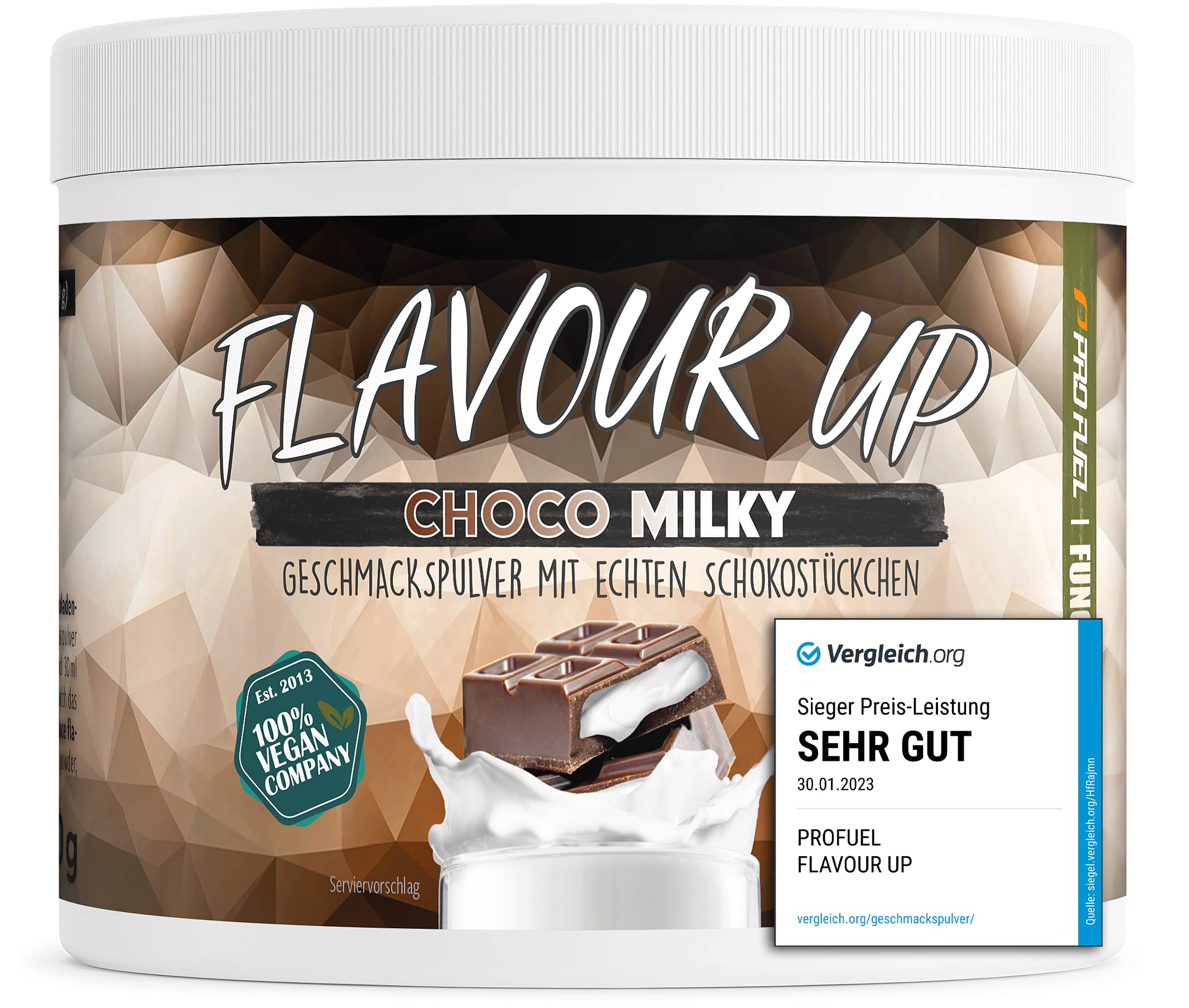 The Flavour Up flavour powder provides plenty of flavour and contains only a few calories per serving. Anyone who has ever done a diet knows exactly that foods that taste good - especially sweets and snacks - usually have a lot of calories, fat and sugar. And you can simply not afford this when losing weight or in a fat loss diet.