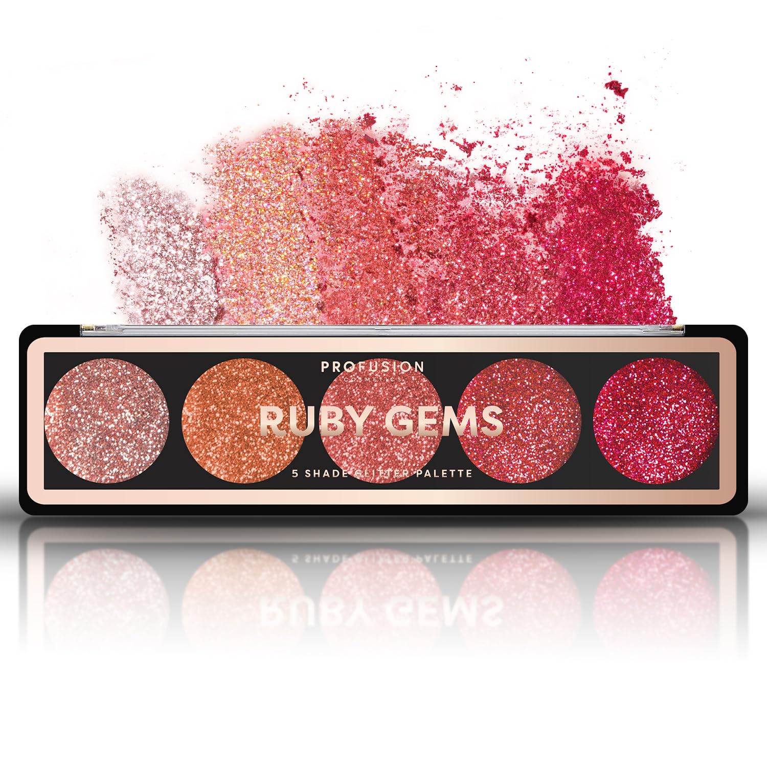 Shine like the gemstone you are with this richly pigmented pressed glitter palette. The ultra-smooth application instantly transforms your look from natural to dazzling in one swipe, while the built-in primer helps the on-trend, vibrant shades stay put from day to night. This Ruby Gems 5-shade glitter eyeshadow palette makes a perfect gift for Valentine's Day, Christmas, or a birthday. INGREDIENTS Mineral Oil, Petrolatum, Tridecyl Trimellitate, Polybutene, Polyethylene Terephthalate, Phenyl Dimethicone, Hydroxystearic Acid, Microcrystalline Wax, Aluminum, Acrylates Copolymer, Ethylhexylglycerin, Phenoxyethanol. May contain: Yellow iron oxide (CI 77492), Black iron oxide (CI 77499), Red iron oxide (CI 77491), Titanium dioxide (CI 77891), Manganese violet (CI 77742), Ultramarine blue (CI 77007), FD C Yellow No. 5 Aluminum Lake (CI 19140:1), D C Red No. 7 Calcium Lake (CI 15850:1), D C Red No. 6 Barium Lake (CI 15850), D C Red No. 27 Aluminum Lake (CI 45410:2), FD C Red No. 40 Aluminum Lake (CI 16035), Ferric ferrocyanide (CI 77510), D C Black No. 2 (CI 17726:6). DIRECTIONS Apply and blend onto eyelids. You can also dab the pigment for intense color. See moreThe perfect gift for Valentine's Day, Christmas, or a wedding anniversary. Helps create glamorous looks that are perfect for any occasion. A smooth texture allows for flawless and easy application. Richly pigmented formula with a built-in primer for long-lasting eyeshadow. A pressed glitter eyeshadow palette with 5 dazzling shades.Profusion Cosmetics Ruby Gems Palette de fards à paupières 5 nuances pailletéesDESCRIPTION DU PRODUIT DESCRIPTION DU PRODUIT Brillez comme la pierre précieuse que vous êtes avec cette palette de paillettes pressées riche en pigments. L'application ultra-lisse transforme instantanément votre look de naturel à éblouissement en un seul geste tandis que l'apprêt intégré permet aux teintes vives tendance de rester en place dès la journée ce soir. Cette palette de fards à paupières à paillettes Ruby Gems 5 nuances est un cadeau parfait pour la Saint-Valentin, Noël ou un anniversaire. INGRÉDIENTS Huile minérale, pétrolatum, trimellitate de tridécyle, polybutène, polyéthylène téréphtalate, phényl diméthicone, acide hydroxystéarique, cire microcristalline, aluminium, copolymère d'acrylates, éthylhexylglycérine, phénoxyéthanol. Peut contenir : oxyde de fer jaune (CI 77492), oxyde de fer noir (CI 77499), oxyde de fer rouge (CI 77491), dioxyde de titane (CI 77891), violet manganèse (CI 77742), bleu outremer (CI 77007), jaune FD C No.5 aluminium lac (CI 19140:1). D C Rouge N 7 Calcium Lake (CI 15850:1), D C Red No.6 Baryum Lake (CI 15850), D C Red No.27 Aluminum Lake(CI 45410:2), FD C Red No.40 Aluminum Lake(CI 16035), Ferrocyanure ferrique (CI 77510), D C Black No.2 (CI I 7726 6). MODE D'EMPLOI Appliquer et mélanger sur les paupières. Vous pouvez également tamponner le pigment pour une couleur intense. Voir plusCadeau idéal pour la Saint-Valentin, Noël ou un anniversaire de mariage. Aide à créer des looks glamour qui sont parfaits pour toutes les occasions. Une texture lisse permet une application impeccable et facile. Formule riche en pigments avec un apprêt intégré pour un fard à paupières qui dure longtemps. Une palette de fards à paupières à paillettes pressées avec 5 nuances éblouissantes.