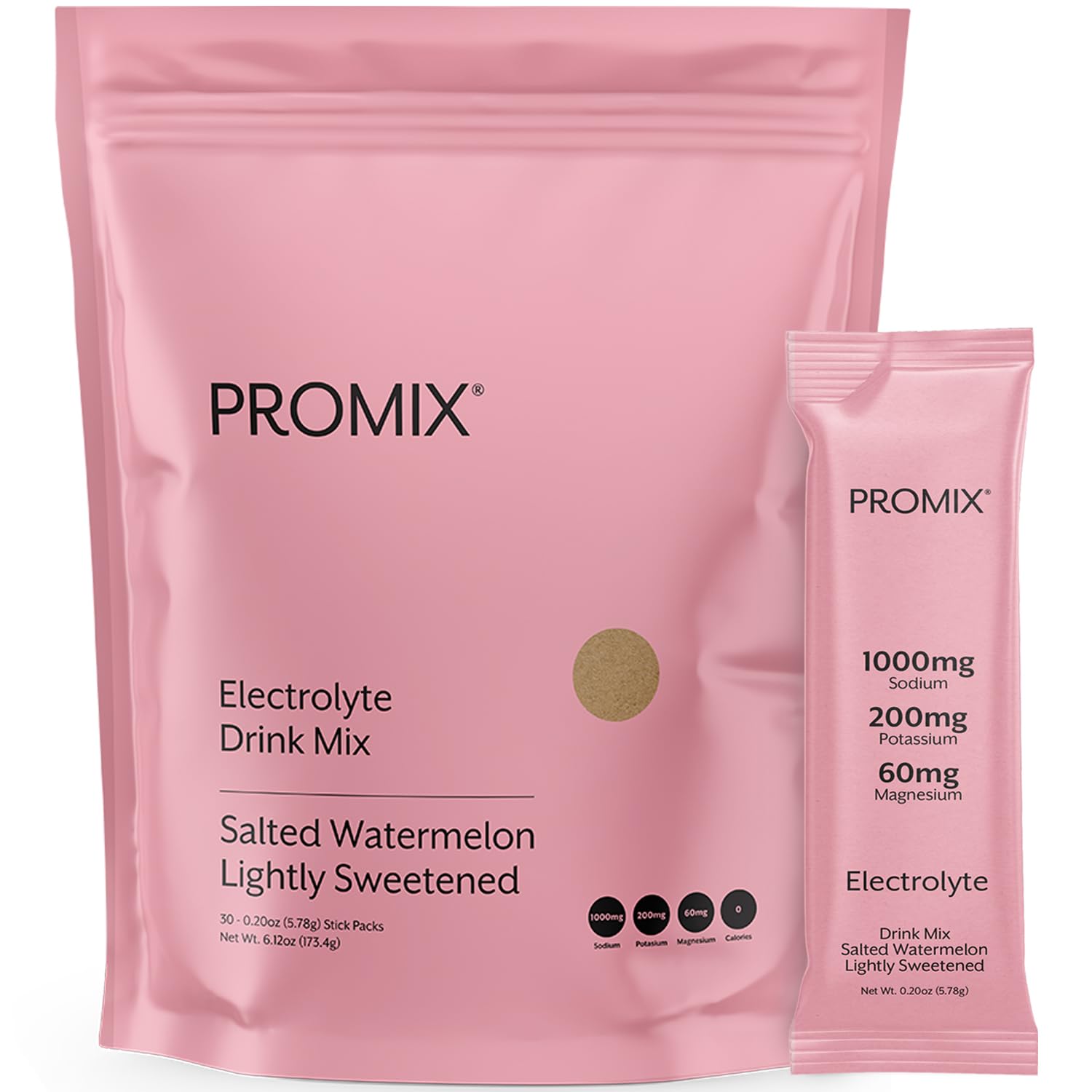 ProMix Nutrition Electrolytes Powder Hydration Packets - Himalayan Pink Salt Magnesium Potassium Vitamin C - Salted Watermelon Lightly Sweetened - 30 Servings (Pack of 30) Watermelon 0.18 Ounce (Pack of 30)
