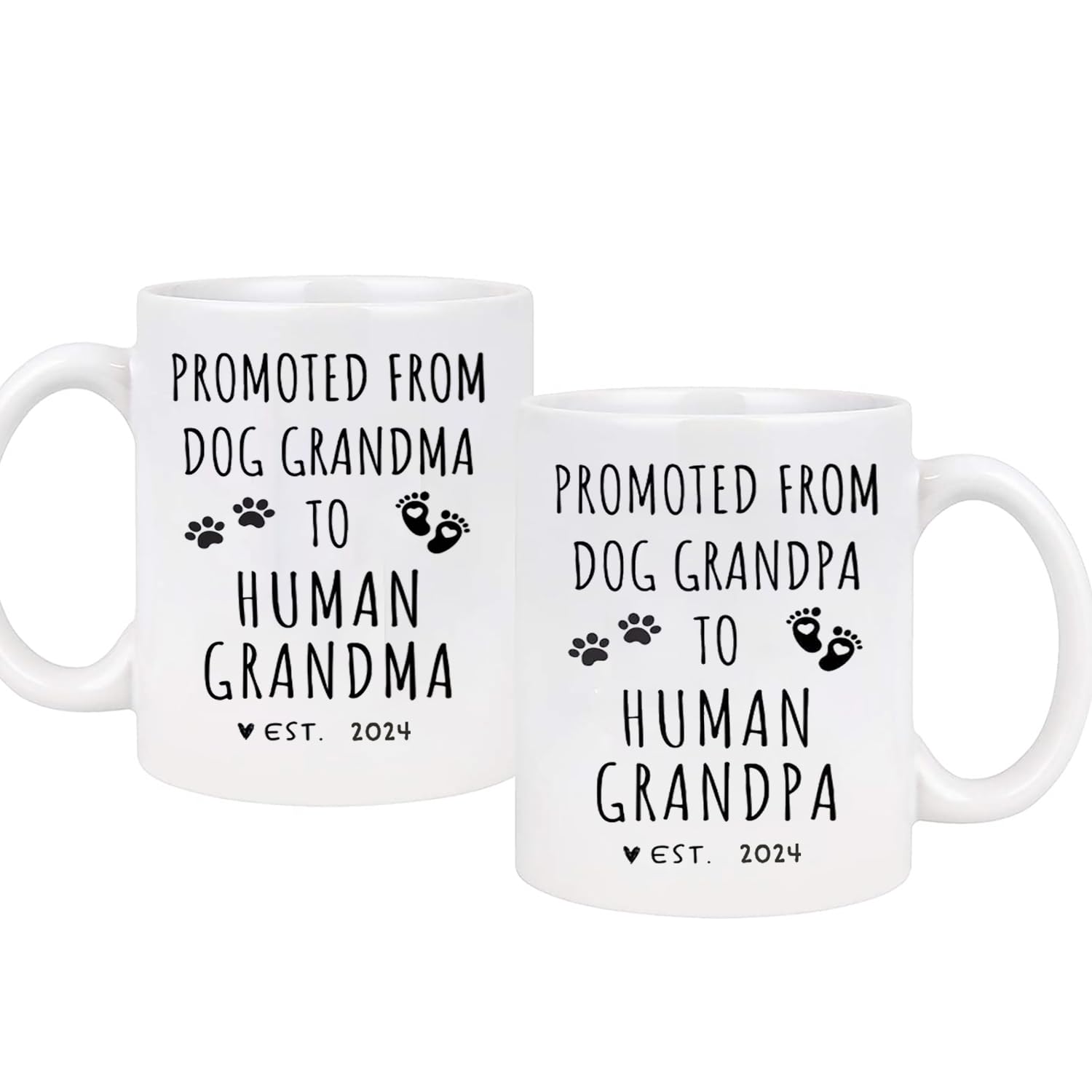 Promoted from Dog Grandparents to Human Grandparents 2024 Coffee Mug Pregnancy Announcement New Grandpa and Grandma Gift Baby Announcement Coffee Mugs