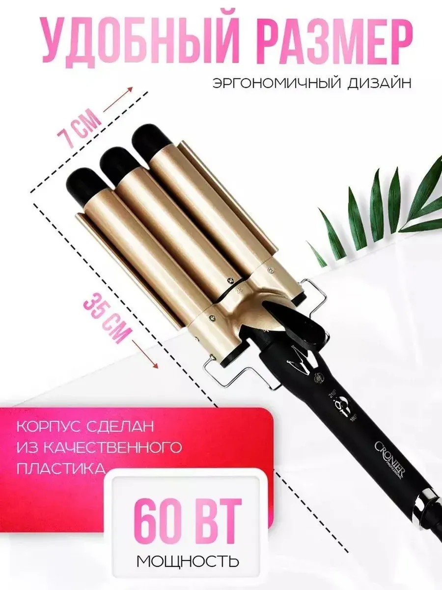 Эта тройная плойка для локонов благодаря своей конструкции значительно экономит время и создает равномерные завитки. Плойка для волос волна подходит для любых типов волос, обеспечивая бережную укладку без повреждений.