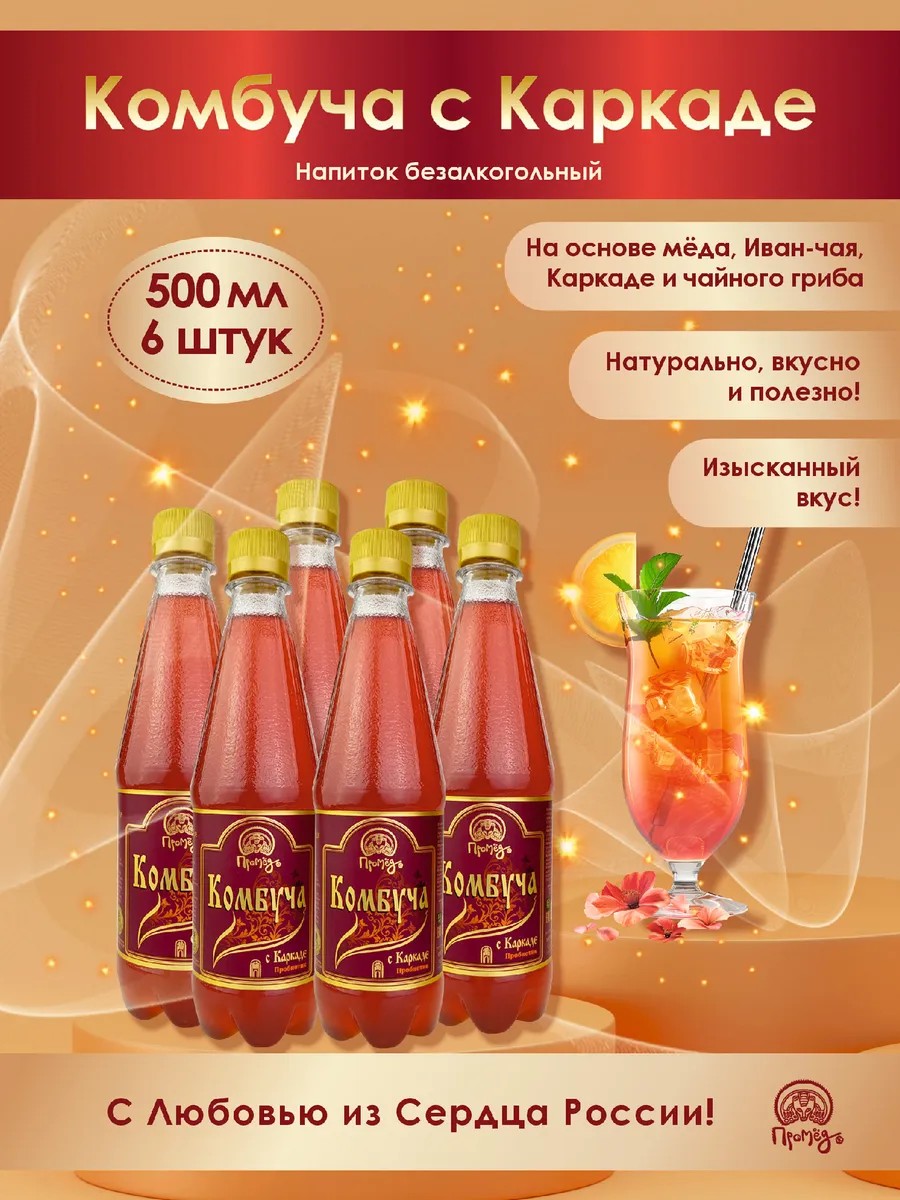 Промёд Комбуча с Каркадэ на меду 6 шт х 0,5 л чайный гриб