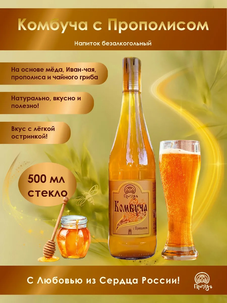 Комбуча с прополисом 500 мл чайный гриб на меду, стекло