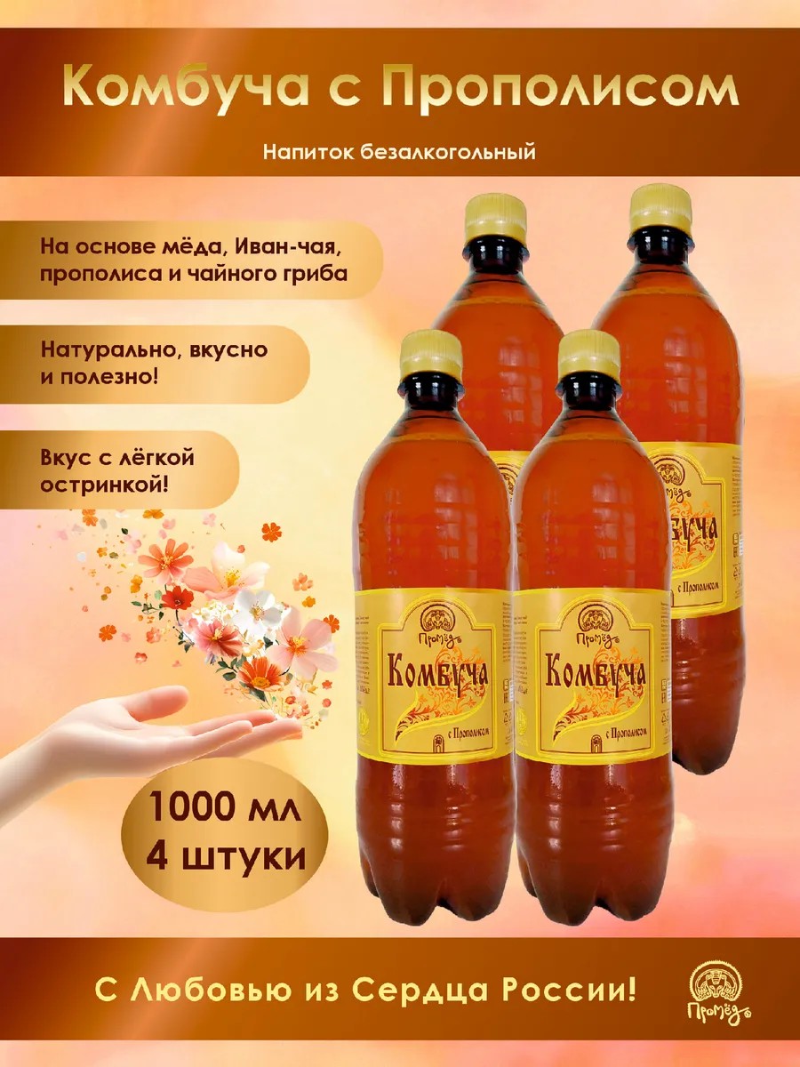 A natural non-alcoholic drink, produced in Russia and made from live kombucha mushrooms, natural flower honey, and Ivan-tea.