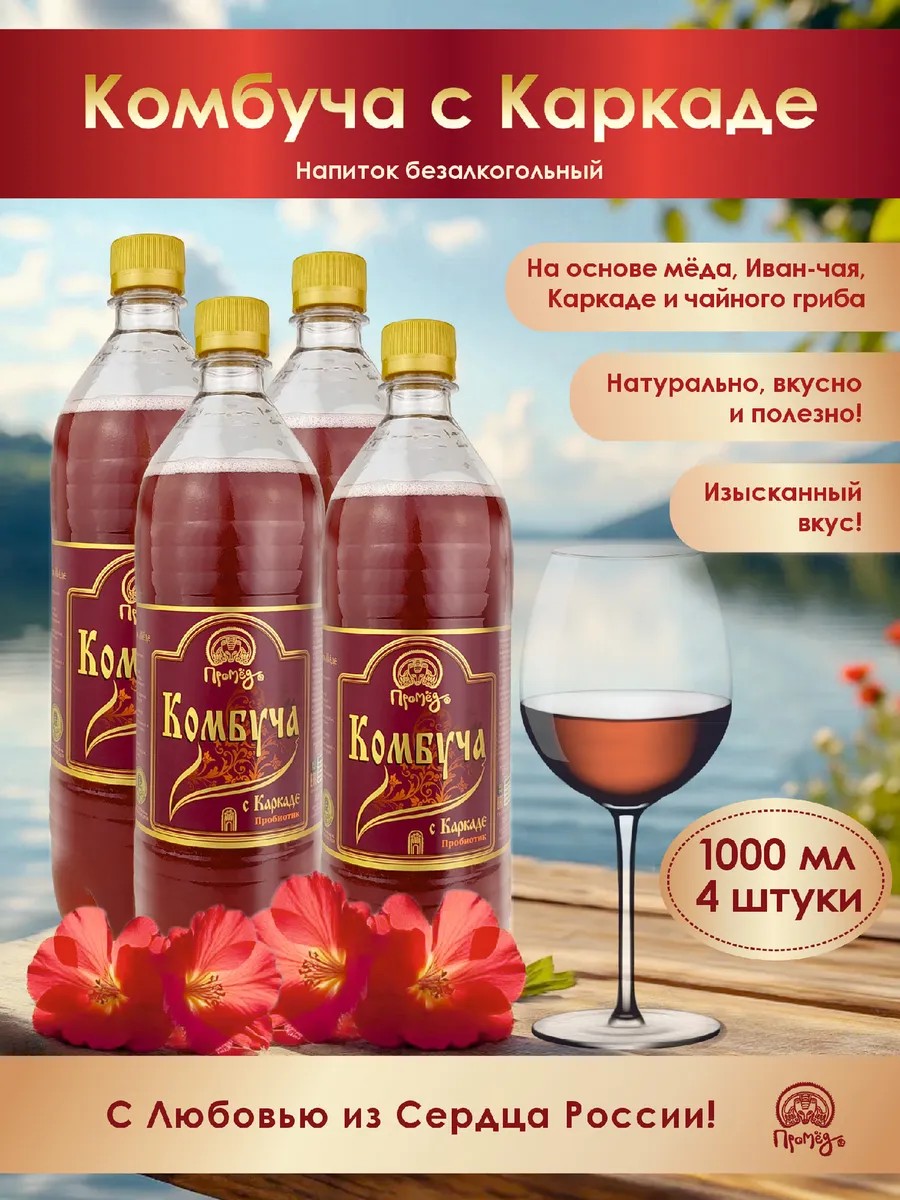Комбуча с каркаде живой чайный гриб набор 4 шт по 1 л