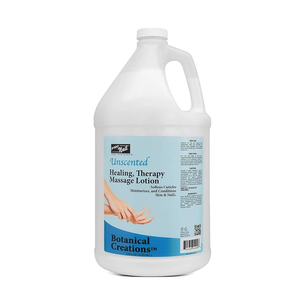 Indulge in luxurious pampering with PRONAIL's Healing Therapy Massage Lotion in Unscented, now available in a generous 128oz bottle. Formulated with nourishing ingredients, this lotion provides intensive hydration and relief for dry, tired skin. The unscented formula is perfect for those with sensitive noses or skin, ensuring a gentle and soothing experience. Whether you're giving yourself a self-care massage or enjoying a professional treatment, this lotion glides effortlessly onto the skin, leaving it feeling soft, smooth, and rejuvenated. Treat yourself to the ultimate relaxation with PRONAIL's Healing Therapy Massage Lotion in Unscented and pamper your skin with the care it deserves. Discover safe, family-friendly care with this product, perfect for all ages and daily beauty, wellness, and relaxation routines. Since 1987, our USA-made range, including hair, skin, foot care, and salon and spa essentials, delivers natural, gentle, practical solutions. Ideal for diverse beauty needs, our products promote relaxation and rejuvenation. Embrace our commitment to safety, quality, and holistic wellness for comprehensive personal care. Make it yours - Experience the Difference Today and Join Thousands of Satisfied Customers.Made in USA: All Our Products Are Made In USA With Highest Quality Ingredients. We Had The Privilege Of globally participating in the personal care industry since 1987. Family-friendly all-age use. Gentle and Fragrance-Free: Free from harsh fragrances, our Unscented Healing Therapy Massage Lotion is gentle on sensitive skin, making it suitable for daily use. Versatile Uses: Use our Unscented Healing Therapy Massage Lotion for a relaxing massage or as a daily moisturizer to keep your skin healthy and hydrated. Soothing and Nourishing: This massage lotion soothes and nourishes your skin, leaving it feeling soft, smooth, and rejuvenated. High-Quality Ingredients: Formulated with high-quality ingredients, our Unscented Healing Therapy Massage Lotion provides gentle care for sensitive skin.