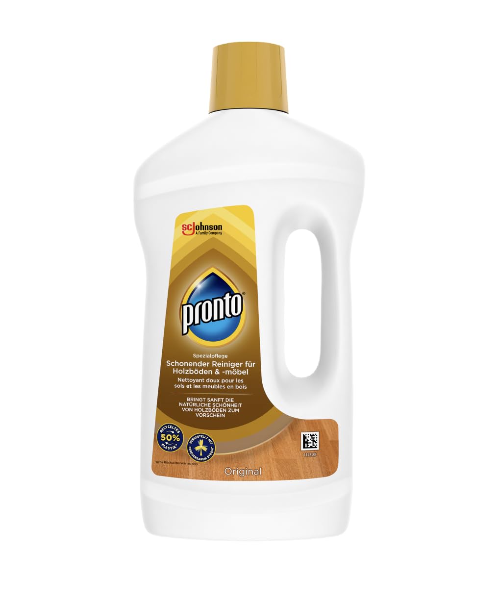 Pronto® gentle liquid wood cleaners for wooden floors and wooden furniture combines quick cleaning with the advantages of a nourishing wood cleaner formula that gives wooden floors and wooden furniture a new shine and reveals the natural beauty.The oil-free wooden cleaner is suitable for sealed wooden floors and laminate as well as for wax-free floors.The gentle wood care makes it possible to remove dirt quickly and without stripes and residues.Application: Test in a small inconspicuous place beforehand.Put two caps of the wooden cleaner (60ml) to approx. 5 liters of warmers and then use with a sponge, cloth or mop.No wiping or wiping dry is necessary. Ingredients / ingredients Ingredients: below 5% soap, below 5% non-ionic surfactants, fragrances, lime, geraniol, benzisothiazolinone.Contains 1.2-Benzisothiazole-3 (2h)-on.Can cause allergic reactions. Instructions Put the closure caps (60ml) Pronto 5in1 wood cleaner to about liters of warm water.Use sponge, cloth or mop.No wiping or rubbing.Avoid strong moisture.Please note: sensitive or open -pore varnishes can be sensitive to water -soluble cleaners.So first test in an inconspicuous area.Not suitable for antique furniture.Do not apply undiluted. Warnings Attention causes severe eye irritation.If medical advice is required, keeping packaging or labeling label ready.Must not get into the hands of children.When contacting the eyes: rinsing water with water for a few minutes.Remove any existing contact lenses if possible.Rinse further.If the eye irritation is persistent: obtain medical advice/ consult medical help.Wash hands thoroughly after use. Address manufacturer/importer Postfach 1328 D - 40673 Erkrath More Pronto gentle liquid wood cleaner for wooden floors and wooden furniture, 1-pack (1 x 750 ml).The nourishing formula brings the natural beauty of your wooden floors and wooden furniture into its fore and gives them a new shine.For the use, add two closure caps of the wooden cleaner (60ml) to approx. 5 liters of warm water, then use with a sponge, cloth or mop, no wiping or drying.The oil-free wood care enables fast removal of dirt and without stripes and residues.Pronto gentle liquid wood cleaner for wooden floors and wooden furniture is suitable for sealed wooden floors and laminate as well as for wax-free soil. Pronto® Schonender flüssiger Holz-Reiniger für Holzböden und Holzmöbel vereint eine schnelle Reinigung mit den Vorteilen einer pflegenden Holzreiniger-Formel, die Holzböden und Holzmöbel einen neuen Glanz verleiht und die natürliche Schönheit zum Vorschein bringt. Der ölfreie Holz-Reiniger eignet sich sowohl für versiegelte Holzböden und Laminat als auch für wachsfreie Böden. Die schonende Holz-Pflege macht eine schnelle Entfernung von Verschmutzungen möglich und das ganz ohne Streifen und Rückstände. Anwendung: Zuvor an einer kleinen unauffälligen Stelle testen. Zwei Verschlusskappen des Holz-Reinigers (60ml) auf ca. 5 Liter warmers Wasser geben und anschließend mit einem Schwamm, Tuch oder Mopp anwenden. Es ist kein Nachwischen oder Trockenwischen nötig. INHALTSSTOFFE / ZUTATEN Inhaltsstoffangabe: Unter 5% Seife, unter 5% nicht-ionische Tenside, Duftstoffe, Limonene, Geraniol, Benzisothiazolinone. Enthält 1,2-Benzisothiazol-3(2H)-on. Kann allergische Reaktionen hervorrufen. GEBRAUCHSANWEISUNG Verschlusskappen (60ml) Pronto 5in1 Holzreiniger auf ca. Liter warmes Wasser geben. Mit Schwamm, Tuch oder Mopp anwenden. Kein Nachwischen oder Trockenreiben erforderlich. Starke Nässe vermeiden. Bitte beachten: Empfindliche oder offenporige Lacke können gegen wasserlösliche Reiniger empfindlich sein. Daher zunächst an unauffälliger Stelle testen. Nicht geeignet für Antikmöbel. Nicht unverdünnt anwenden. WARNHINWEISE Achtung Verursacht schwere Augenreizung. Ist ärztlicher Rat erforderlich, Verpackung oder Kennzeichnungsetikett bereithalten. Darf nicht in die Hände von Kindern gelangen. BEI KONTAKT MIT DEN AUGEN: Einige Minuten lang behutsam mit Wasser spülen. Eventuell vorhandene Kontaktlinsen nach Möglichkeit entfernen. Weiter spülen. Bei anhaltender Augenreizung: Ärztlichen Rat einholen/ ärztliche Hilfe hinzuziehen. Nach Gebrauch Hände gründlich waschen. ANSCHRIFT HERSTELLER/IMPORTEUR Postfach 1328 D - 40673 Erkrath MehrPronto Schonender flüssiger Holz-Reiniger für Holzböden und Holzmöbel, 1er Pack (1 x 750 ml). Die pflegende Formel bringt die natürliche Schönheit ihrer Holzböden und Holzmöbel zur Geltung und verleiht ihnen einen neuen Glanz. Zur Anwendung zwei Verschlusskappen des Holz-Reinigers (60ml) auf ca. 5 Liter warmes Wasser geben, anschließend mit einem Schwamm, Tuch oder Mopp anwenden, Kein Nach- oder Trockenwischen erforderlich. Die ölfreie Holz-Pflege ermöglicht eine schnelle Entfernung von Verschmutzungen und das ganz ohne Streifen und Rückstände. Pronto Schonender flüssiger Holz-Reiniger für Holzböden und Holzmöbel eignet sich sowohl für versiegelte Holzböden und Laminat als auch für wachsfreie Böden.Pronto Schonender flüssiger Holz-Reiniger für Holzböden und Holzmöbel, 1er Pack (1 x 750 ml)
