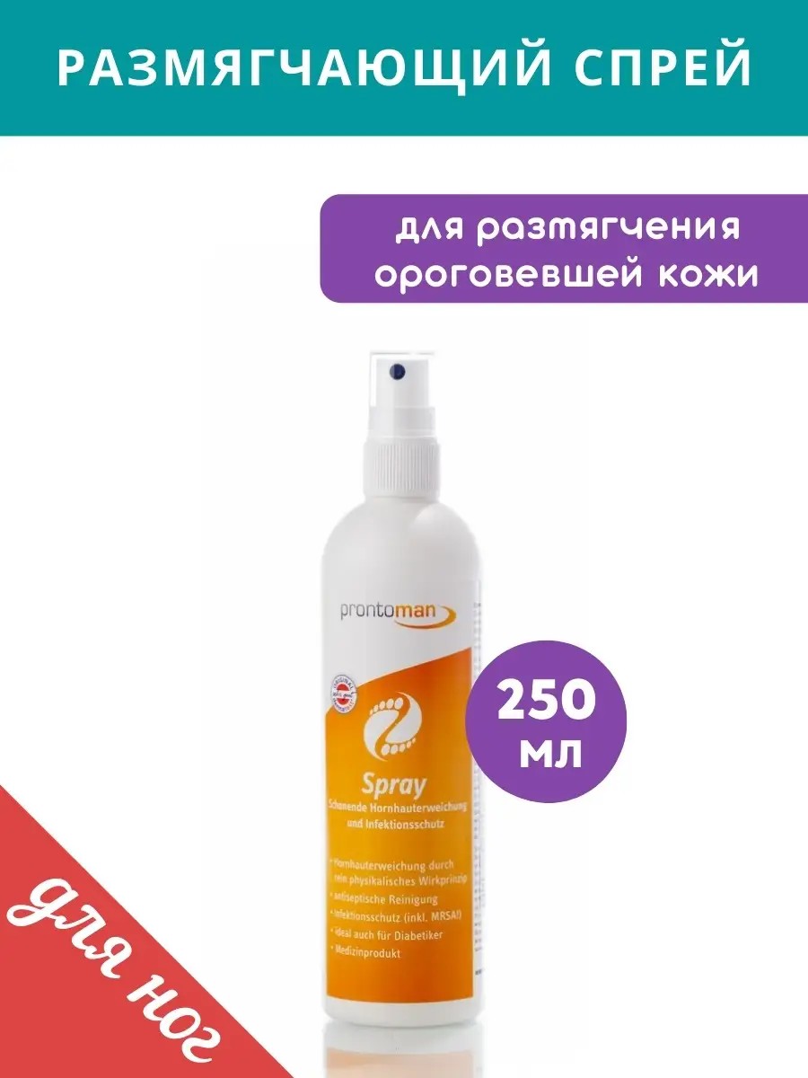 Prontoman спрей - это средство, которое поможет размягчить огрубевшие пятки и обеспечить им гладкость. Продукт прекрасно подойдет для стоп и пяток, придавая коже нужное увлажнение и мягкость.