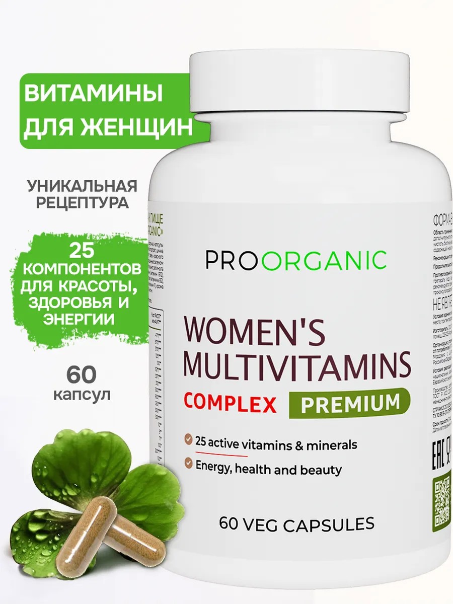 Выбирайте наши витамины для женщин – Женские Мультивитамины PROORGANIC Premium Complex для поддержки здоровья, красоты и энергии каждый день!