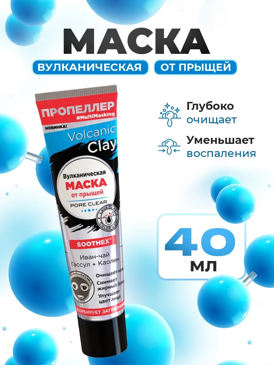 Пропеллер Вулканическая маска от прыщей и черных точек Иван-чай, Гассул+Каолин Volcanic Clay 40мл
