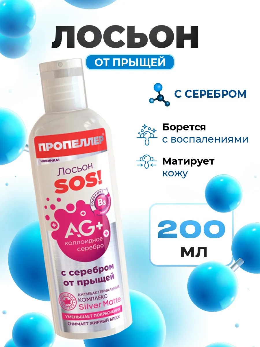 Пропеллер Лосьон SOS! с серебром от прыщей 200мл.