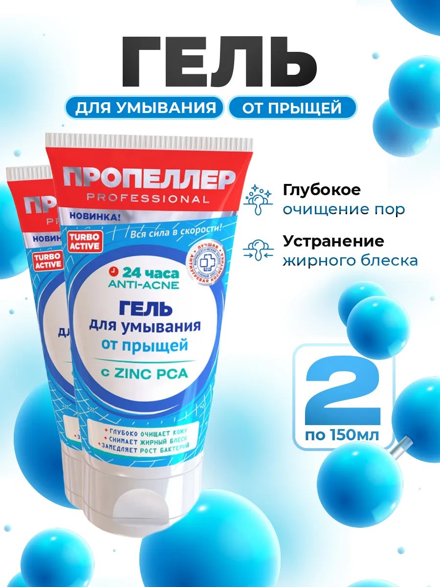 Пропеллер Turbo Active Гель для умывания от прыщей с Цинцидоном для глубокого очищения пор Набор 2шт*150мл.