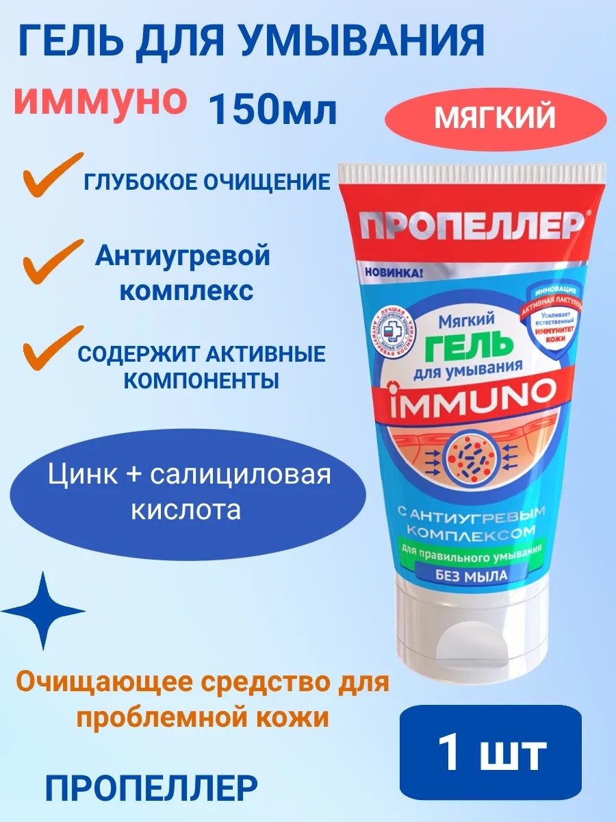 ПРОПЕЛЛЕР Мягкий гель для умывания с антиугревым комплексом.