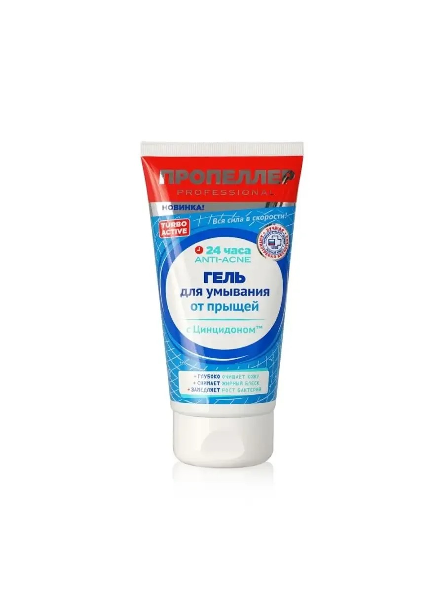 Пропеллер Гель для умывания от прыщей Turbo activ с Цинцидоном для глубокого очищения пор, 150 мл. Пропеллер - линия косметических средств по уходу за кожей, подверженной образованию черных точек и акне, их применение не вызывает привыкания.Пропеллер Микроотшелушивающий гель для умывания Комплекс ВНА 2,0% для кожи, склонной к акнеВнешний вид: Однородная гелеобразная масса, замутнённая, с нежным кисло - сладким ароматом.Разработан специально для деликатного очищения кожи, склонной к жирности и образованию комедонов. Глубоко очищает поры, мягко отшелушивает отмершие клетки эпидермиса, способствует уменьшению закупорки пор.Сверхмягкая бессульфатная моющая основа не пересушивает кожу и сохраняет оптимальный уровень увлажнения.Салициловая кислота предотвращает появление воспалений, очищая поры изнутри. Природные салицилаты коры ивы в сочетании с салицилатом натрия нормализуют активность сальных желез, сужая поры и устраняя жирный блеск.