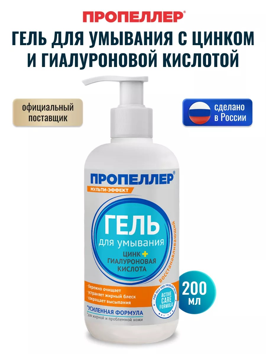 Очищающий гель для умывания с цинком и гиалуроновой кислотой Пропеллер идеально подходит для жирной кожи и кожи, склонной к акне.