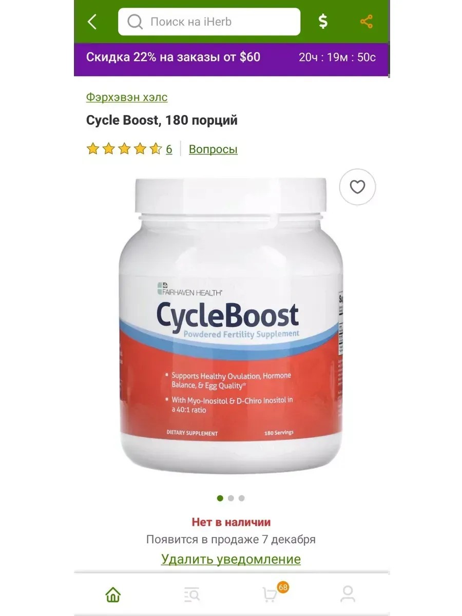 CycleBoost содержит мио-инозитол и d-хироинозит в виде порошка для питья для поддержания здоровой овуляции, гормонального баланса и качества яйцеклеток.