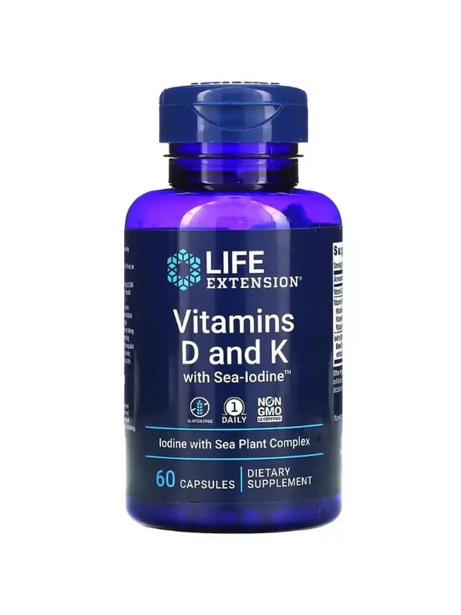 Эта формула содержит 125 мкг (5000 МЕ) витамина D3, 2100 мкг витамина K и 1000 мкг йода в виде удобной добавки для приема один раз в день для поддержки здоровья костей, мозга, щитовидной железы и сосудов. Поддержание здорового уровня витамина D способствует когнитивному здоровью, здоровью костей, здоровой иммунной функции и многому другому. Витамин К помогает поддерживать баланс кальция в организме, который влияет на все — от здоровья сердечно-сосудистой системы до плотности костей. Йод необходим для производства гормонов щитовидной железы.ПРИМЕНЕНИЕ. Перед применением внимательно изучите информацию на этикетке и строго следуйте рекомендациям.Принимать по одной (1) капсуле ежедневно во время еды или по назначению лечащего врача