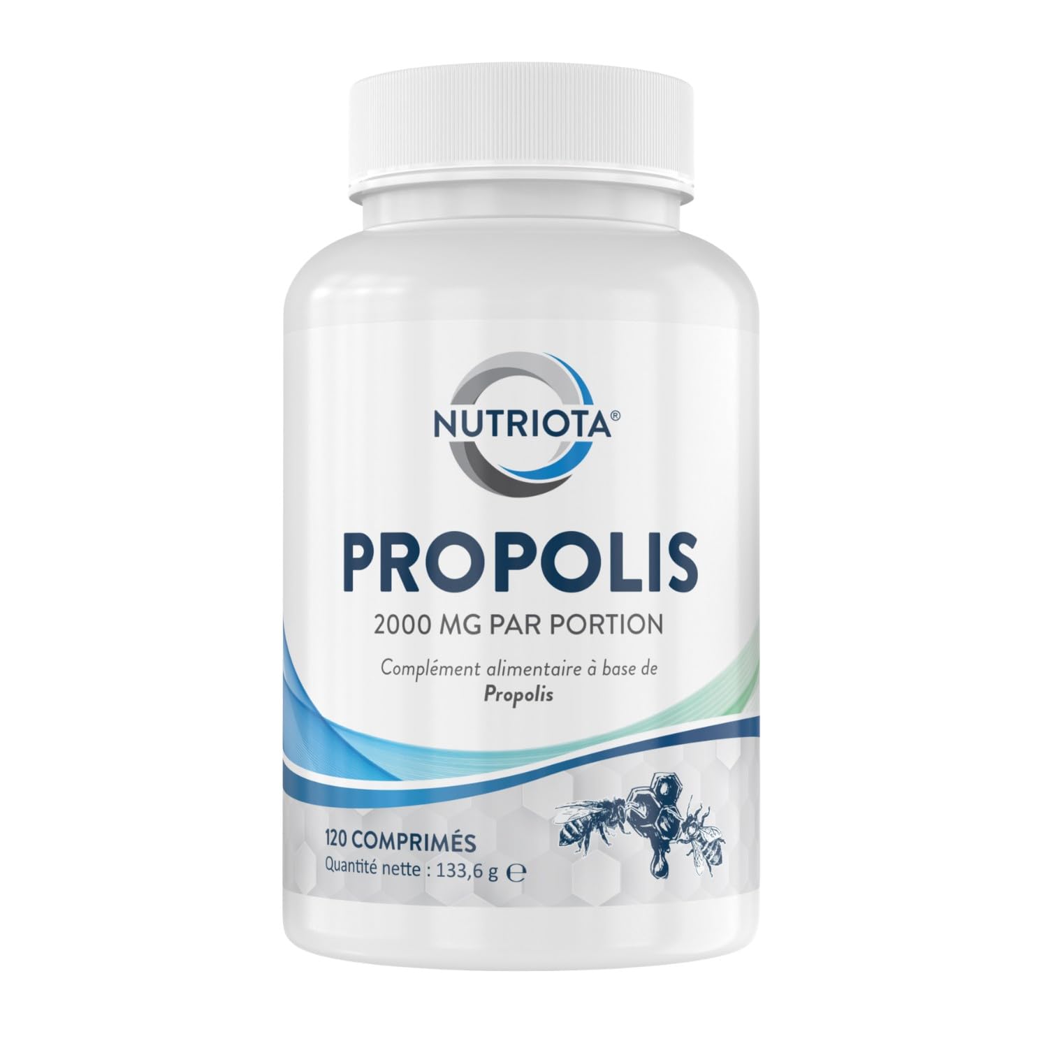 Propolis 2000mg - Comprimés de Propolis haute concentration - 120 comprimés - Soutien naturel du système immunitaire, soulage les maux de gorge et efficace comme antioxydant - Par Nutriota RENFORCE NATURELLEMENT LE SYSTÈME IMMUNITAIRE : La propolis d'abeille est l'une des sources les plus riches en bioflavonoïdes que l'on puisse trouver dans la nature, ce qui en fait une source ultime de protection naturelle. La propolis d'abeille est utilisée depuis des siècles pour traiter les maux de gorge et d'autres affections diverses et contribue à renforcer efficacement et naturellement le système immunitaire. PURE ET NATUREL : Nos comprimés de propolis sont fabriqués à partir d'extrait de propolis d'abeille de haute qualité et ne contiennent aucun additif artificiel. PUISSANT ANTIOXYDANT : La propolis est riche en polyphénols, flavonoïdes et bioflavonoïdes. Il constitue donc un puissant antioxydant et un complément anti-inflammatoire. Ajoutez simplement notre supplément de propolis d'abeille à votre journée pour rester en bonne santé. HAUTE CONCENTRATION : Chacun de nos comprimés haute concentration contient 2000 mg d'extrait de résine de propolis d'abeille. VOUS EST NOTRE E : Etes-vous ou remboursé ?! Si notre complément alimentaire naturel à la propolis ne répond pas à vos besoins, n'hésitez pas et nous vous aiderons immédiatement. Nous ne vous poserons aucune question et vous n'aurez pas à vous expliquer. N'hésitez plus et venez tester les bienfaits de ce produit !