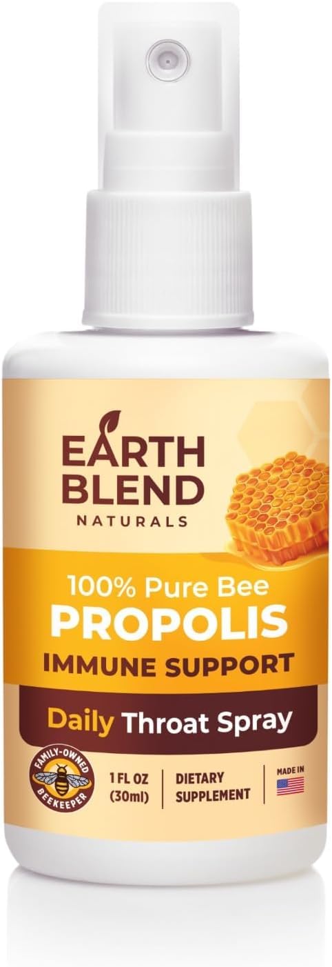 Premium Quality, Made in USA Family-Owned: Crafted with care in the USA adhering to rigorous standards and sourced from a family-owned beekeeping operation, this throat spray ensures premium quality and traceability, making it a trusted choice for natural wellness. A product you can feel good about using!. Travel-Friendly and Convenient: This compact, easy-to-use spray is perfect for on-the-go use, whether you're traveling or commuting. Its natural formula ensures that you're always ready to tackle throat discomfort, wherever you are. Gluten-Free, Natural Throat Comfort: Crafted with pure, gluten-free ingredients, this throat spray is safe for those with dietary restrictions. The natural honey flavor makes it a pleasant alternative to cough drops, providing soothing comfort without artificial additives. Ideal for adults and kids alike!. Anti-Snoring Spray for Restful Nights: Struggling with snoring? This propolis throat spray soothes throat tissues, reducing snoring caused by dryness or irritation. Its natural ingredients promote smoother breathing, helping you and your loved ones enjoy quieter, more restful sleep. A must-have for anyone seeking a natural snoring solution. Immune Support Supplement Year-Round: Boost your immune system with earthblend Naturals' propolis-rich formula. Packed with antioxidants and natural compounds, this spray supports your body's defenses while eg sore throats and coughs. A daily dose of wellness for the whole family.