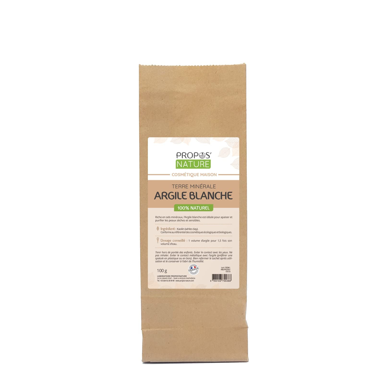 Propos'Nature white clay is a natural, versatile and powerful product for cosmetic use. This 100 natural, white clay can be used for facial masks, body wraps and hair masks. It absorbs excess sebum and impurities from the skin and hair, giving it a purifying and restorative effect. The fine, powdery texture makes it easy to apply and mix with water or other liquids for a smooth paste. Apply to damp skin or hair, leave on for a moment and rinse for a fresh, healthy glow. This clay is a versatile addition to your skin care and hair care routine for a natural glow. SAFETY WARNING Avoid contact with the eyesPackaged in environmentally friendly packaging of 100 grams. Easy to use: Mix the powder form with water for a smooth paste. Purifying: Absorbs excess sebum and impurities for fresh and clear skin. Versatile: Suitable for various applications such as facial masks, hair care and body peeling. Natural: This white clay is 100 natural and free of chemicals or additives.Propos'Nature Witte Klei, 100 g, Natuurlijke Minerale Aarde Propos'Nature witte klei is een natuurlijk, veelzijdig en krachtig product voor cosmetisch gebruik. Deze 100 natuurlijke, witte klei kan worden gebruikt voor gezichtsmaskers, lichaamspakkingen en haarmaskers. Het absorbeert overtollig talg en onzuiverheden uit de huid en haren, waardoor het een zuiverende en herstellende werking heeft. De fijne, poedervormige textuur maakt het gemakkelijk aan te brengen en te mengen met water of andere vloeistoffen voor een gladde pasta. Breng het aan op een vochtige huid of haar, laat het even intrekken en spoel het af voor een frisse, gezonde gloed. Deze klei is een veelzijdige toevoeging aan uw huidverzorgings- en haarverzorgingsroutine voor een natuurlijke glow. VEILIGHEIDSWAARSCHUWING Vermijd contact met de ogenVerpakt in milieuvriendelijke verpakking van 100 gram. Gemakkelijk in gebruik: Meng de poedervorm met water voor een gladde pasta. Zuiverend: Absorbeert overtollig talg en onzuiverheden voor een frisse en heldere huid. Veelzijdig: Geschikt voor diverse toepassingen zoals gezichtsmaskers, haarverzorging en lichaamspeeling. Natuurlijk: Deze witte klei is 100 natuurlijk en vrij van chemicaliën of toevoegingen.