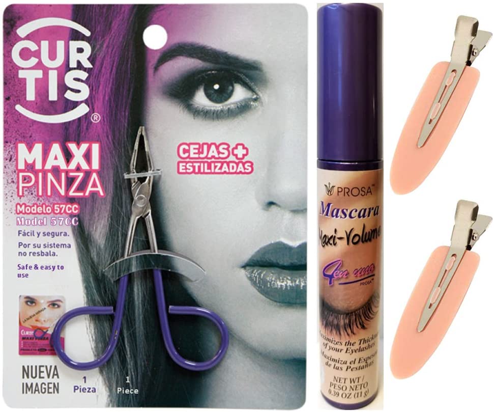 What is included? 1x Mascara MAXI VOLUME PROSA, 1x Scissors Tweezers MAXI PINZA Model 57CC, 2x PROFESSIONAL Hair Clips(Pink) ?This is THE MASCARA YOU HAVE BEEN WAITING FOR? "Supreme Volume" Maxi-Volume 4 en uno, Formula that provides a unique intensity to the volume of your eyelashes. In addition to the four natural ingredients that you already know, we make the black of your eyelashes look more intense. *Formula that will take your lashes to the max. *Special Max-Pro brush that dispenses mascara homogeneously and abundantly. *Complemented with the natural ingredients that characterize our 4-en-uno formulas (Mamey Bone, Aloe Vera, Jojoba and Wheat Germ). *Your eyelashes will look raised and much more abundant. INGREDIENTS: C10-12 Alkane/Cycloalkane, Beeswax (Apis Mellifera), Microcrystalline Wax, Aluminum Distearate, Lanolin, Propylparaben, BHT, Wheat (Triticum Vulgare), Germ Oil. May Content: Iron Oxide (C.I. 77491, C.I. 77492, C.I. 77499) Black Number 2 (C.I. 77266) Complemented with the natural ingredients that characterize our 4-en-one Formulas (Mamey Bone, Aloe Vera, Jojoba and Wheat Germ). Maxi-Volume 4 en uno, 1 count (0.39 Fl Oz)?YOU WILL LOVE THIS MASCARA?MASCARA #1 IN MEXICO? ? PROFESSIONAL SCISSORS TWEEZERS? with Easy Scissor Handle, Perfect Brow Remover, Beauty Tools for Women and Men Great Precision for Eyebrows, Facial Hair, Ingrown Hair, Fine Hair, Blackhead and more. 2 Pink Hair Clips: Great hair accessories: no crease, no marking, no bend hair clips which are perfect for any hairstyle especially bangs. Easy to use: perfect size (2.4*0.8inch) and very light weight, very suitable for using on bangs, and will not leave creases. Good quality: made of quality plastic and stainless steel which is durable and can be used for long time. YOU WILL LOVE THIS AMAZING SET! BRAND #1 IN MEXICO??YOU WILL LOVE THESE TWEEZERS? For men and women COLOR: Purple and Silver; SIZE: Length 3.2” Width: 2.5” approx. HANDY SIZES TO ALWAYS TAKE WITH YOU!! ?EASY TO USE ? 100% Buyer Satisfaction High Quality & Precision Easy grip action removes the most difficult hairs quickly and effectively Professional salon length & Professional Quality ?PERFECT GIFT ?. ? PROFESSIONAL SCISSORS TWEEZERS? with Easy Scissor Handle, Perfect Brow Remover, Beauty Tools for Women and Men Great Precision for Eyebrows, Facial Hair, Ingrown Hair, Fine Hair, Blackhead and more. ?EASY TRAVEL TWEEZERS?. ?EASY TO USE? Features easy grip and perfect tension for optimal comfort and control so you can tweeze hairs easily and comfortably. ?COMPLEMENTED WITH THE NATURAL INGREDIENTS that characterize our 4-en-uno formulas (Mamey Bone, Aloe Vera, Jojoba and Wheat Germ). ?Thanks to its ingredients ensures your look stays put for up to 18 hours, YOU WILL LOVE IT!. ?MASCARA #1 IN MEXICO: Prosa 4 en uno Maxi-Volume,1 count 0.39 Fl Oz, Color: Blackest Black. Professional Volumizing & Lengthening Mascara, Full lash fringe volume and intense length, 20x more volume and up to 2x more length. Say Goodbye to False Lashes. OTHER BENEFITS: Buildable, Defining, Curling, Multiplying, Long lasting, Waterproof. ?WHAT IS INCLUDED? 1x Mascara MAXI VOLUME PROSA, 1x Scissors Tweezers MAXI PINZA Model 57CC, 2x PROFESSIONAL Hair Clips.Best Sellers Rank: See Top 100 in Beauty & Personal Care. Brand: Generic. Material Type Free: Fragance Free, Paraben Free. Special Feature: Waterproof, Long-Wearing, Natural Ingredients. Product Benefits: Volumizing, Curling, Multiplying, Intense Length. Color: Blackest Black. Country of Origin: Mexico. : B0BX4DFRNB. Manufacturer: PROSA PRODUCTOS NATURALES S.A. DE C.V., ?INDUSTRIAS CURTIS, S.A. DE C.V. Item model number: MTHC57. Package Dimensions: 5.79 x 4.76 x 0.71 inches; 1.59 Ounces.