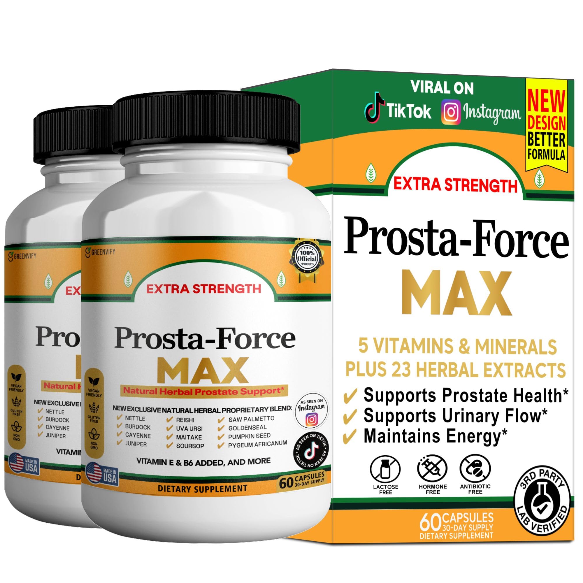 Prosta-Force Max Extra Strength Prostate Support Natural Herbal Supplement with Saw Palmetto Pygeum Plant Sterols 60 Capsules (2)