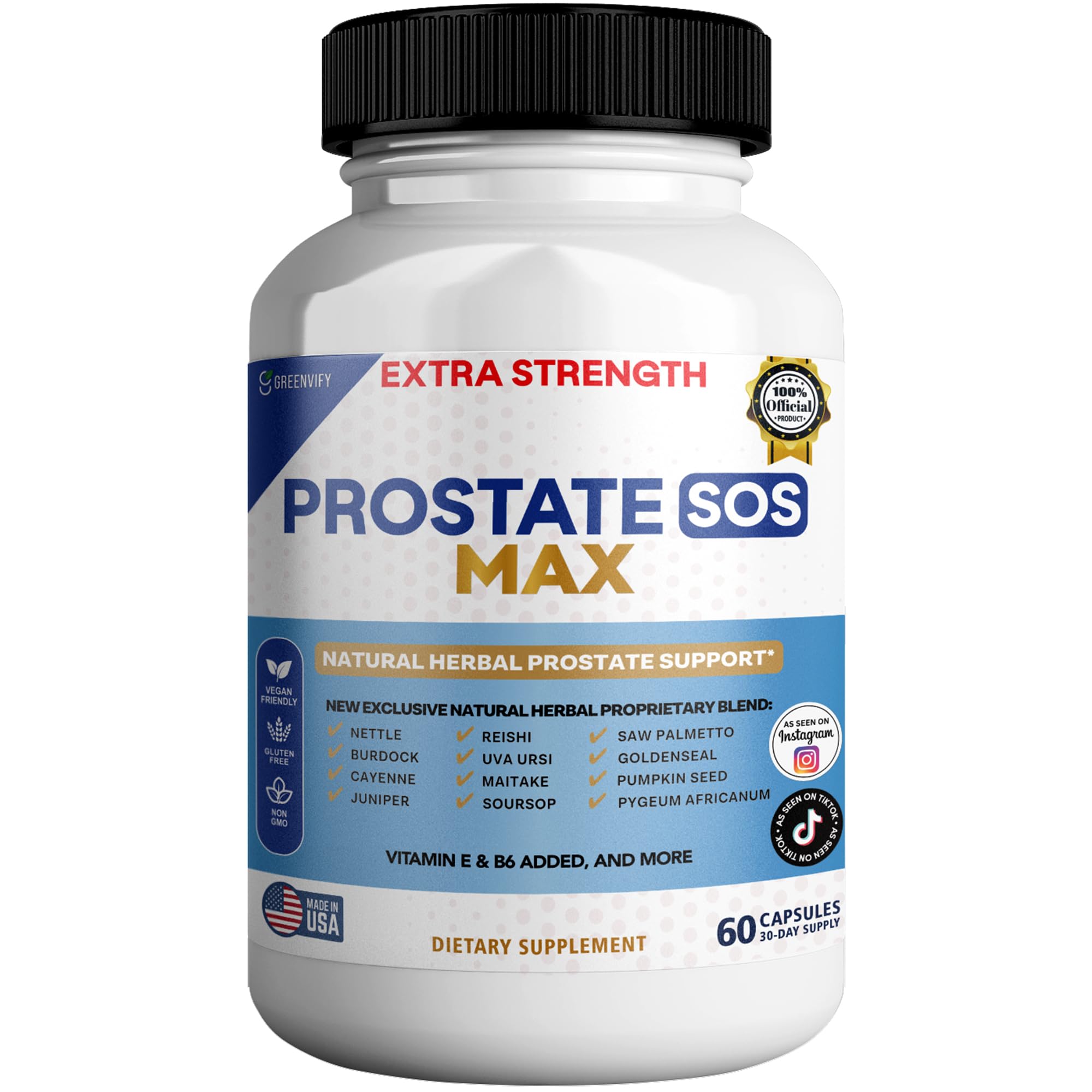 Prostate SOS Max Supplement 60 Capsules Natural Herbal Complex with Saw Palmetto Vitamin E B6 30-Day Supply (1)