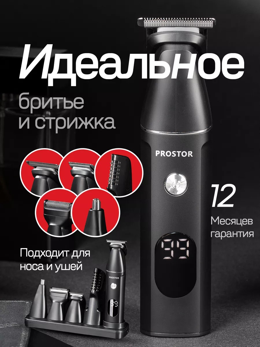 Триммер мужской это универсальный аккумуляторный помощник в уходе за собой. Триммер для лица электрический предназначен не только для стрижки бороды и усов, но и для бритья, коррекции бровей, стрижки волос и даже ухода за носом и ушами. Комплект состоит из 5 сменных насадок с лезвиями из нержавеющей стали. Основная выполняет стрижку волос головы. Четыре вспомогательные 3/6/9/12 мм регулируют длину среза. Головка-шейвер с легкостью справляется с щетиной. Насадка для ушей и носа максимально осторожно и бережно удаляет волосы. Головка для тела наделена эргономичной формой для работы даже в труднодоступных и интимных частях тела, таких как бикини женское. Малый вес машики и комфортабельная модель позволяет использовать шейвер в течение длительного времени. LED-дисплей отображает уровень заряда в процентах, а также предупредит о необходимости смазки. Длинное зажатие кнопки питания включает у женского триммера режим защиты от случайного включения, что является безопасным для детей. Триммеры оснащены надежным роторным двигателем, развивающим мощность до 6500 оборотов в минуту. Благодаря влагозащите стандарта IPX6 устройство не боится функционирования во влажных условиях. Мобильная док-станция осуществляет функцию зарядки машинки для бороды и бритья. Для каждого предмета предусмотрено отдельное место. В набор также входит расческа и щетка для чистки. Этот профессиональный станок станет незаменимым ассистентом в вашем ритуале ежедневной гигиены, что делает его замечательным подарком по любому поводу, для всех возрастов независимо от пола.