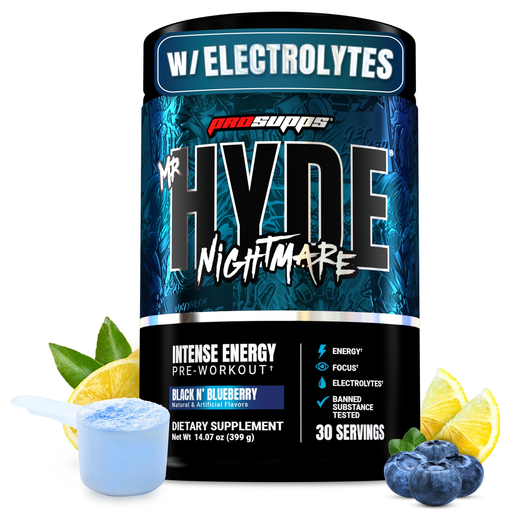 PROSUPPS Mr. Hyde Nightmare Pre Workout Powder with Caffeine & Beta Alanine - Preworkout for Intense Energy Mental Focus & Performance - Gym & Fitness Supplements (Black N' Blueberry 30 Servings)