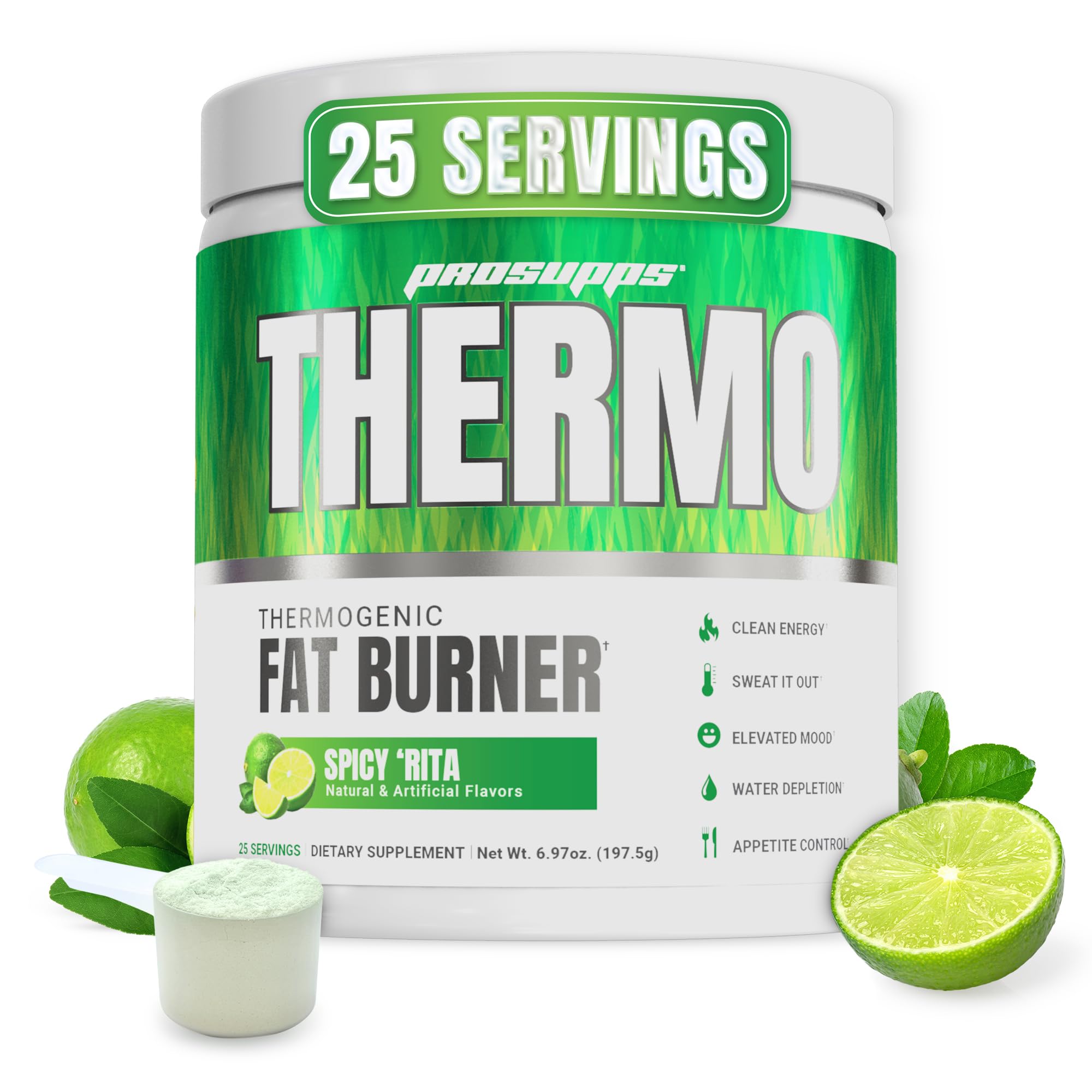 ProSupps – No Excuses, Just Results: ProSupps' dedication to quality and integrity means that we never cut corners and we always put your health and performance FIRST. Every ProSupps product goes through rigorous third-party testing for purity, efficacy and transparency. EVERY BATCH. EVERY TIME. Sweat it Out with Clean Ingredients: Made in the USA, Thermo powder is soy and gluten free, vegan, and contains no artificial dyes. Zero calories, zero sugar, zero carbs, and caffeine free. Suggested Use: Mix one scoop with 8 oz of cold water and consume 15–30 minutes prior to cardio or exercise. Advanced users may take up to two scoops. Appetite Management Support: Help curb cravings and manage hunger with Innoslim and Chromax. These key nutrients support weight management by promoting satiety and helping regulate appetite. Boost Energy and Focus: Start your day strong with 200mg of PurCaf Organic Caffeine for clean, sustained energy. Stay mentally sharp with focus-supporting ingredients like SunPS and NeuroRush, designed to help keep you dialed in all day long. Revitalize Metabolism Function: Elevate your metabolism and energy levels with ProSupps Thermogenic Fat Burner. This advanced formula combines thermogenic ingredients like Paradoxine and CapsiBurn to increase core body temperature and support calorie burning. Each serving delivers 200mg of PurCaf Organic Caffeine for clean, sustained energy. Spicy Rita, 25 servings.