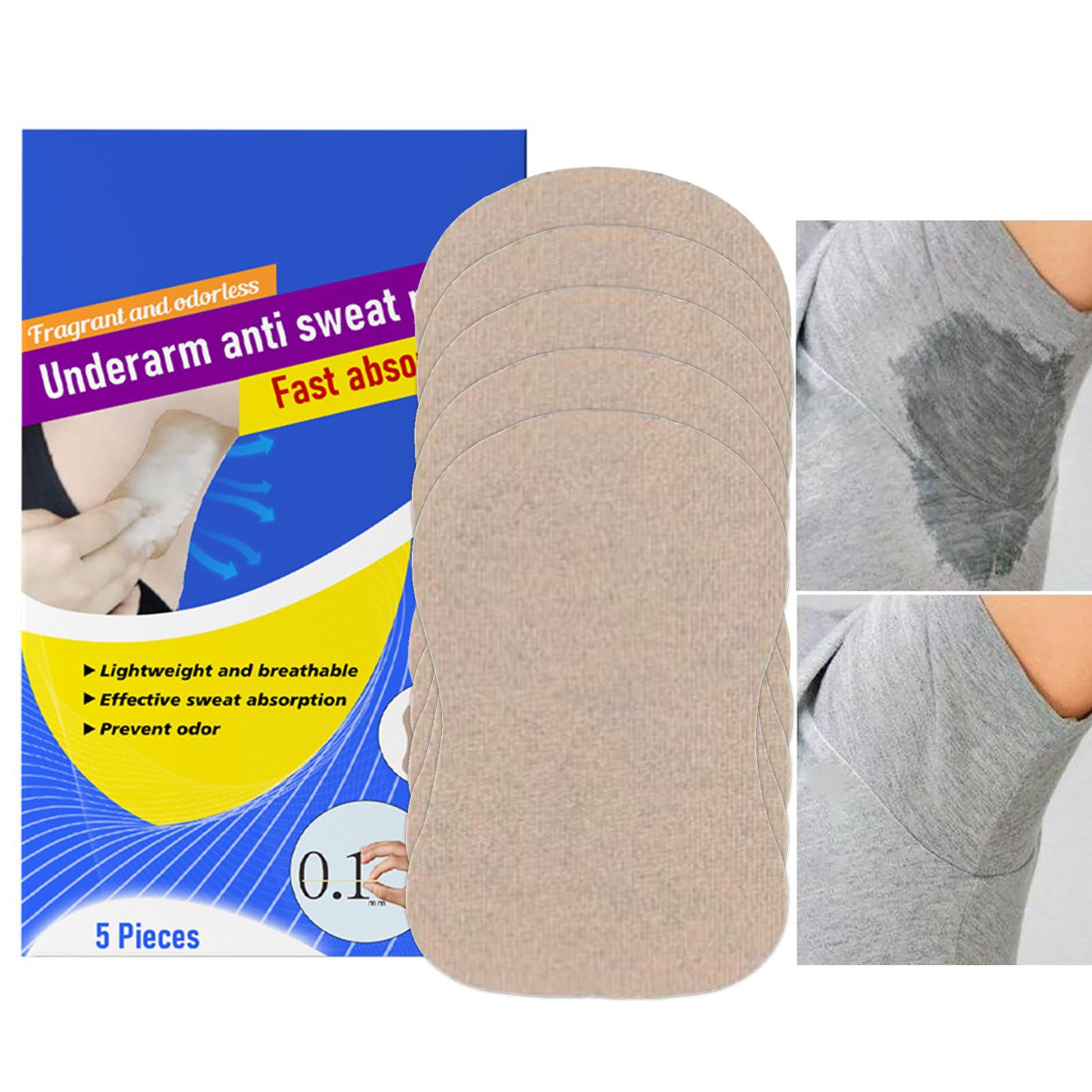 Easy to carry and lightweight: Designed for convenience, our women's sweat pads feature a lightweight, low-profile design that easily fits in your everyday carry. Ideal for quick freshening up while commuting, attending meetings, or working out. Great gift idea: Perfect for Christmas, birthdays, or Thanksgiving, these underarm sweat pads offer women discreet and reliable protection. A thoughtful gift for any celebration. Advanced sweat absorption: These underarm pads utilize a high-performance material to neutralize sweat and odor upon contact. The highly effective absorbent core works instantly. Easy to use: Engineered for durability, our sweat pads adhere firmly to the skin without irritation, providing hours of sweat absorption. Their versatile design allows for seamless use under the arms or on the feet. Non-slip: Designed with precise sleeve stitching for a secure fit, these underarm pads stay in place during workouts or everyday tasks. Their breathable fabric allows the skin to breathe.Facile à transporter et léger : conçus pour plus de commodité, nos coussinets de transpiration pour femme présentent une forme légère et peu encombrante qui se glisse facilement dans votre port quotidien. Idéal pour un rafraîchissement rapide pendant les déplacements, les réunions ou les entraînements. Bon cadeau : idéal pour offrir à Noël, un anniversaire ou Thanksgiving, ces coussinets de transpiration sous les aisselles offrent aux femmes une protection discrète et fiable. Un cadeau attentionné pour toute célébration. Absorption avancée de la transpiration : ces coussinets sous les aisselles utilisent un matériau haute performance pour neutraliser la sueur et les odeurs lors des contacts. Le noyau absorbant très efficace fonctionne instantanément. Facile à utiliser : conçus pour la durabilité, nos coussinets de transpiration adhèrent fermement à la peau sans irritation, offrant des heures d'absorption de la transpiration. Leur design polyvalent permet une utilisation sans couture sous les bras ou sur les pieds. Antidérapant : conçus avec une couture précise des manches pour un ajustement sûr, ces coussinets sous les aisselles restent en place pendant les entraînements ou les tâches quotidiennes. Leur tissu respirant permet à la peau de respirer.Protège-bras anti-transpiration – Protection anti-transpirante douce 5X, invisible et respirant pour performance athlétique, travail professionnel, sensible