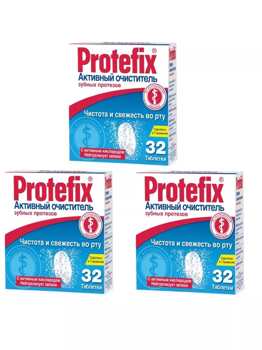 Protefix активный очиститель зубных протезов, в удобном формате таблеток, предназначен для быстрой и эффективной очистки поверхности протезов. Одной только чистки протезов зубной щеткой недостаточно, необходимы специальные средства для ежедневного ухода за зубными протезами. Особенно хорошо в качестве таких средств зарекомендовали себя таблетки. Они содержат активный кислород, очищают протезы, уничтожают запахи, не разрушая при этом ценный материал, из которого изготовлены протезы, надолго сохраняют свежий запах во рту. Удобная упаковка в виде таблеток позволяет легко брать с собой в дорогу или на работу, а также дозировать необходимое количество средства для очистки протезов. Сделайте уход за своими зубными протезами еще проще и удобнее с Protefix активным очистителем.