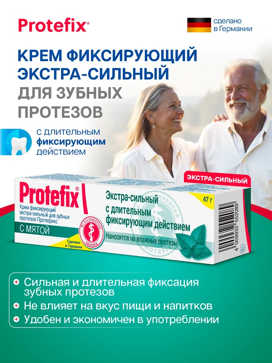 | Комплектация | крем для сильной фиксации зубных протезов Протефикс; картонная коробка; Protefix для протезов для фиксации; Протефикс для протезов для фиксации; Крем для фиксации зубных протезов; крем для сильной фиксации зубных протезов |