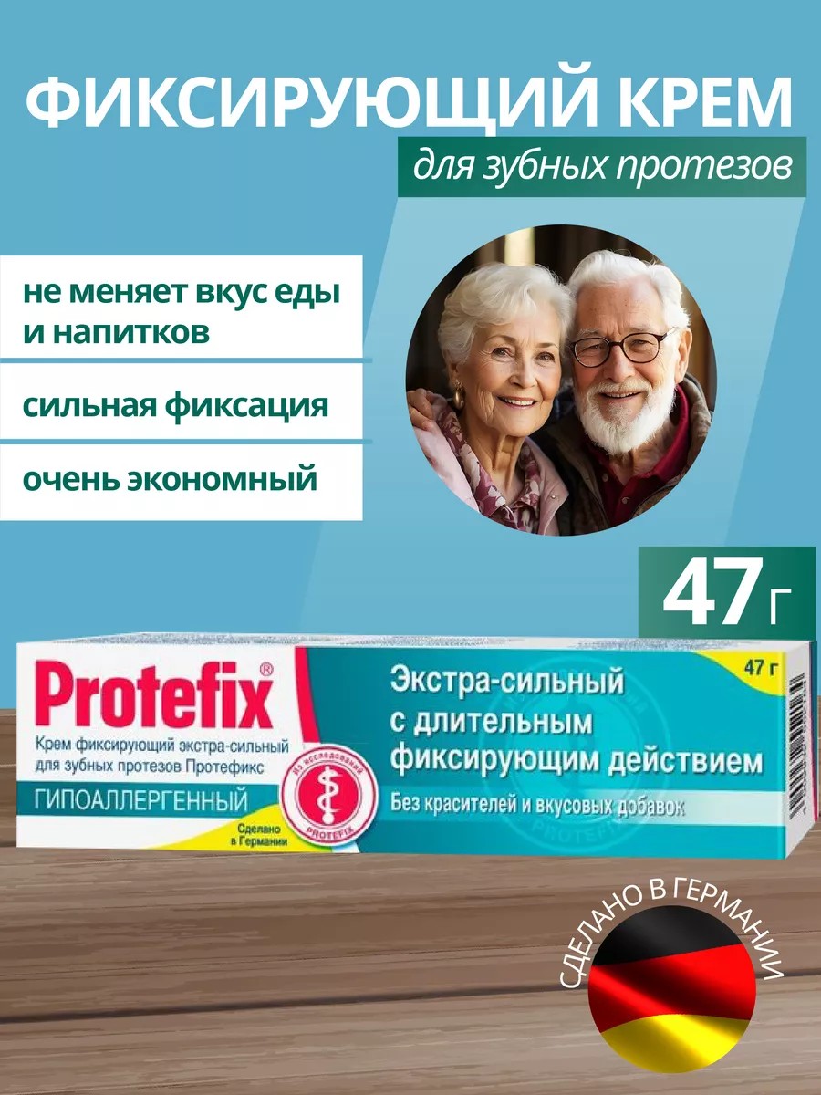 Фиксирующий крем для зубных протезов Гипоаллергенный Protefix — это средство для надежной фиксации зубных протезов, специально разработанное для людей с повышенным или нормальным слюноотделением. Крем обеспечивает длительную и сильную фиксацию протезов, которая сохраняется не менее 12 часов, не смывается слюной и остается эффективной даже при употреблении горячей или холодной пищи.