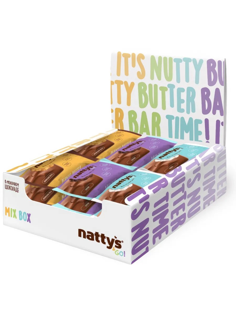 Протеиновые батончики Nattys&Go Mini Mix Peanut, Brownie, Coconattys без сахара, 20г х 18 шт - это батончики с ореховой пастой внутри, покрытые слоем настоящего молочного шоколада, без добавления сахара, очень вкусный, полезный и абсолютно натуральный перекус, который доставит много удовольствия и зарядит энергией! Теперь та самая ореховая паста Nattys всегда с собой, в удобной форме батончика to go это вкусное и легкое лакомство, идеально для твоего полезного перекуса, без вреда для фигуры и здоровья, без сахара, создан из премиальных ингредиентов высшего качества, с честным и чистым составом. Nattys &Go - это чистый заряд энергии и насыщение на длительное время. Источник растительного белка и клетчатки.