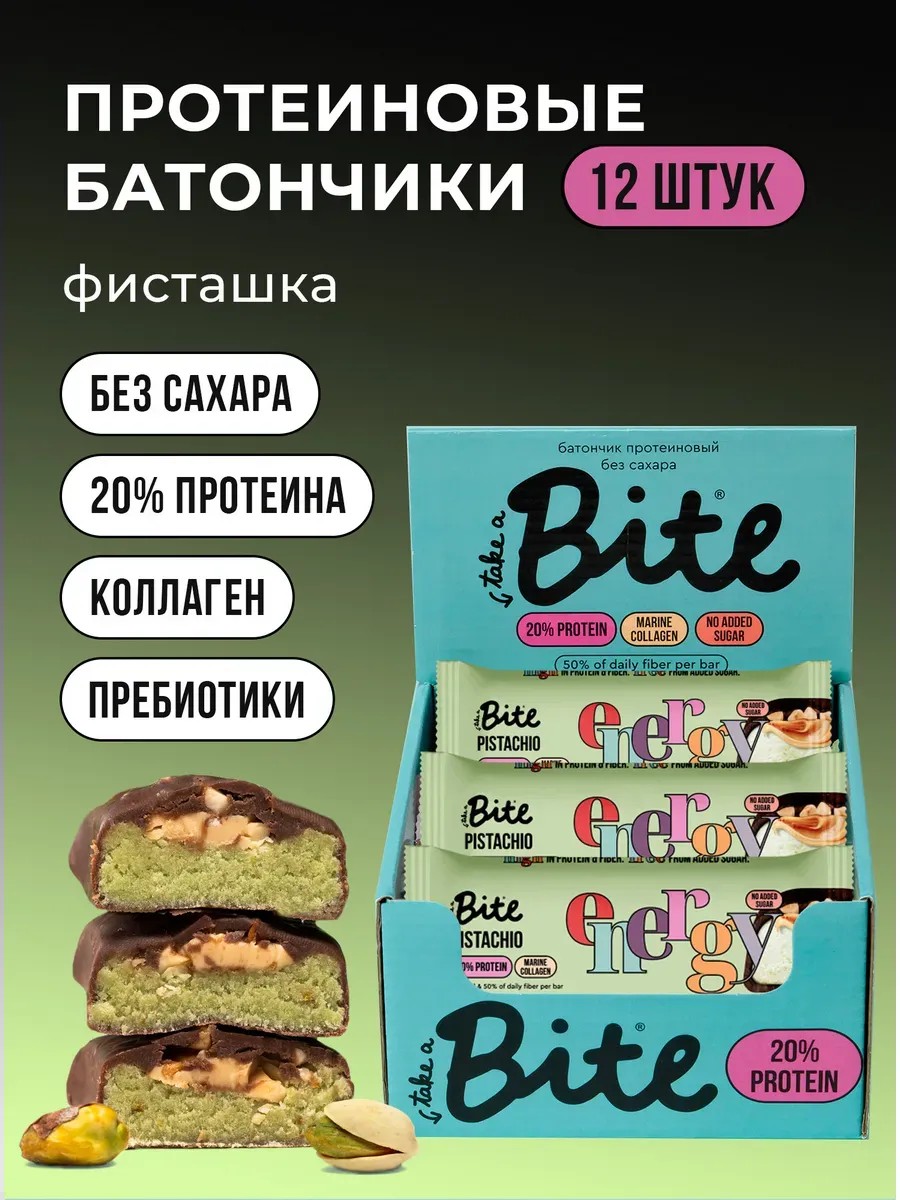 Протеиновые батончики Bite Фисташка, 12 шт х 50гр