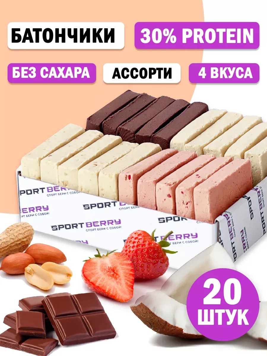 Протеиновые батончики без сахара Ассорти 30% protein 20 штук