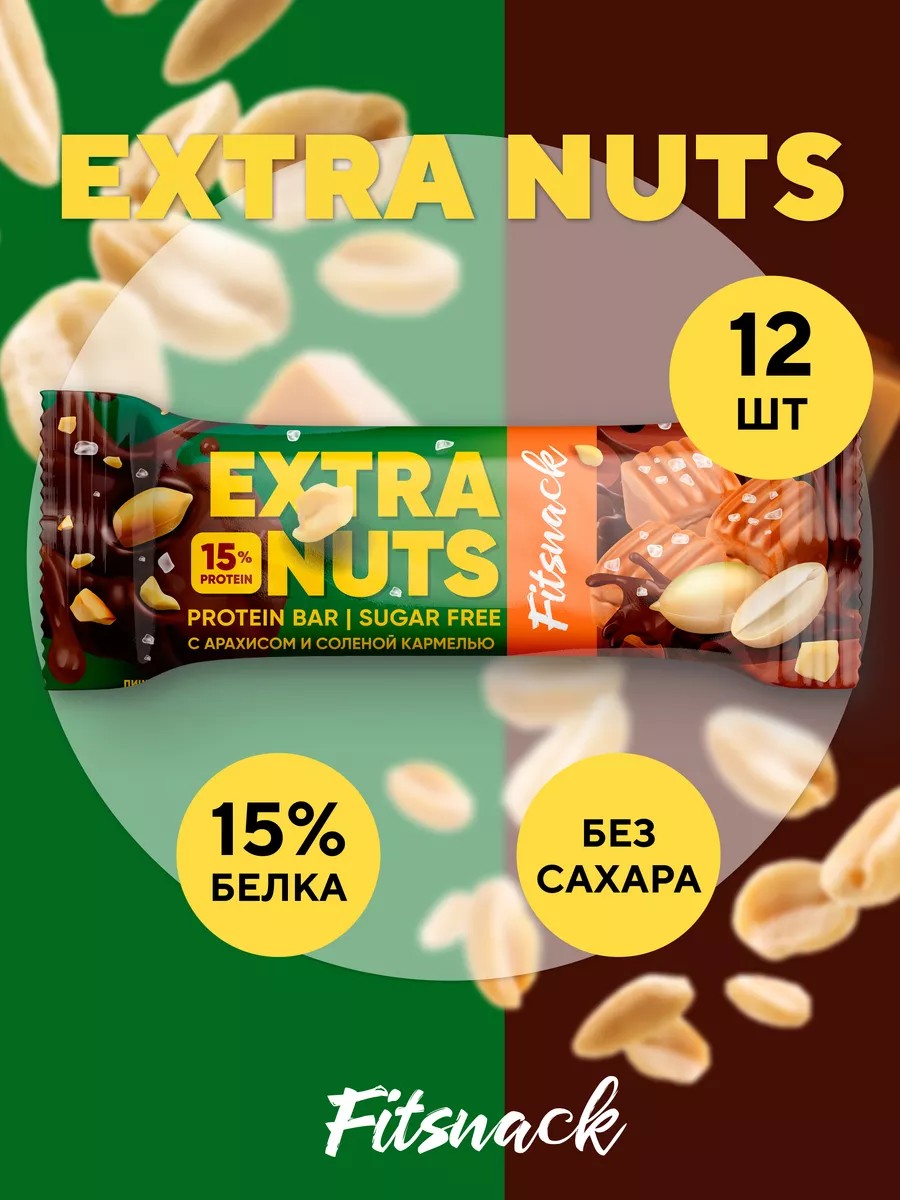 Протеиновые батончики без сахара EXTRA NUTS 12шт