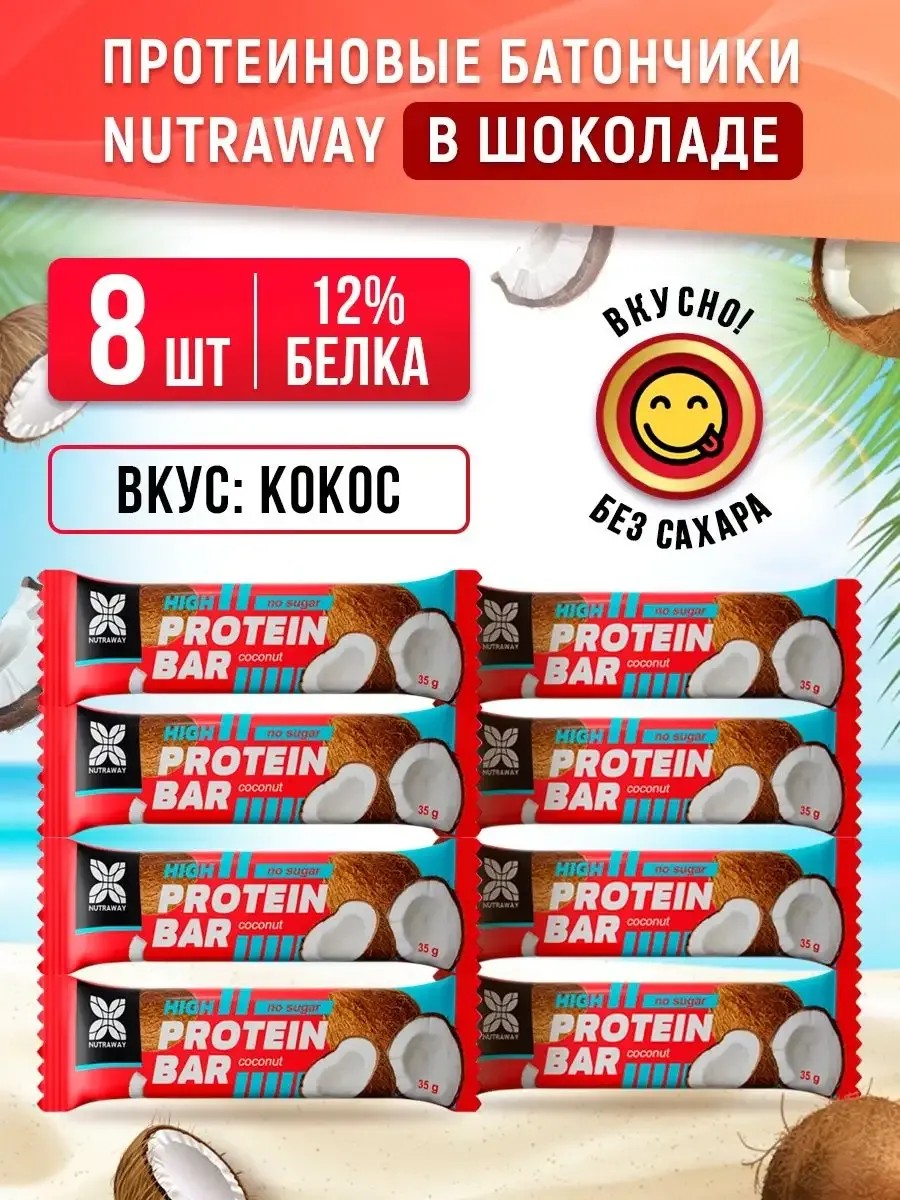 Протеиновые батончики без сахара в шоколаде– вкусный и полезный перекус для современного ритма жизни, где бы вы ни находились. Богатые белком, высокобелковые пп батончики прекрасно утоляют чувство голода. Такие диетические низкокалорийные сладости незаменимы для тех, кто следит за своей фигурой. В спортзале или на бегу в офис, здоровый перекус от Nutraway составит отличную компанию рациону вашего правильного питания, батончики можно использовать как питание для похудения, так и дополнить свой рацион большим кол-вом белка во время набора мышечной массы. Со здоровой диетической белковой едой в виде протеинового батончика без сахара, спортивное и диетическое питание приобретает другой вкус. Диетические сладости protein именно то, что нужно для правильного поддержания спортивной фигуры Невероятный натуральный вкус: кокос coco