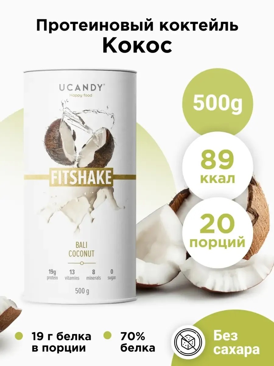 FITSHAKE - протеиновый коктейль для похудения (кокос) - это сывороточный протеин с коллагеном и витаминным комплексом, идеальное дополнение для всех, кто стремится к идеальной фигуре и хочет привести свое питание в порядок. Этот протеиновый белковый коктейль для похудения идеально подходит для женщин и мужчин, которые занимаются спортом и хотят сжечь жир или набрать мышечной массы. Используйте как коктейль для похудения или протеин для похудения и заменить им один прием пищи, либо дополнить обычный рацион, чтобы набрать мышечную массу. Это комплексный коктейль, который отличается от большинства сходных товаров на рынке, так как в его составе коллаген и биотин, который помогает укрепить соединительные ткани, улучшить волосы и кожу, сделав её гладкой и сияющей, а ногти и крепкими. Преимущество нашего коктейля - высокое содержание белка и уникальный низкокалорийный состав, содержащий коллаген, а так же с витамины и минералы. Вкусы от шоколада и ванили до соленой карамели. Насыщает организм аминокислотами для быстрого восстановления, эффективного роста мышц и сжигания жира. Содержит казеиновый и сывороточный белки, а так же концентрат молочного белка. В составе витаминный премикс - Витамины B A C D3 и витамин E, а так же биотин и инулин с L-карнитин. Содержит экстракт зеленого чая и CLA которая способствует ускорению обмена веществ и похудению. Содержит изолят сывороточного протеина. Коллаген в составе для здоровья суставов и хрящей. Сохранит упругость кожи и красоту волос и ногтей. Благодаря содержанию гидролизата коллагена, он направлен на укрепление тканей и повышение эластичности кожи. Это важно для тех, кто хочет сохранить свою красоту и молодость. Наш продукт подходит для всех кто хочет дополнить свой рацион питания. Благодаря уникальному составу и коллагену он улучшает обменные процессы работает на замедление старения клеток. Добавляйте в различные коктейли и каши, подходит для приготовления блинчиков. Коктейль не содержит сахар, что делает его идеальным для тех, кто следит за своим здоровьем. Добавьте одну ложку порошка в молоко или йогурт или смесь для кексов и вы получите полезный и вкусный продукт. Юкенди коктейль с витаминным комплексом идеально подходит для всех кто заботится о своем здоровье красоте и форме. Он поможет вам достичь ваших целей в спорте обеспечивая необходимые питательные вещества для сжигания жира и похудения или набора мышечной массы. Подходит для тех кто хочет укрепить свои суставы. Это не просто порошок это дополнение которое поддерживает энергию и жизненную силу тела. Как приготовить коктейль: налить 200-250 мл жидкости и добавить 1 мерную ложку либо 2 мерные ложки на 350-400 мл. Взболтать. Содержит лецитин для похудения. Юкенди - лучший коктейль для похудения Он работает на замедление старения клеток. Вы можете добавлять фитшейк в различные коктейли и каши а также использовать его при приготовлении блинчиков. В составе нет добавленного сахара чтo делает его идеальным выбором для тех кто внимателен к своему здоровью.