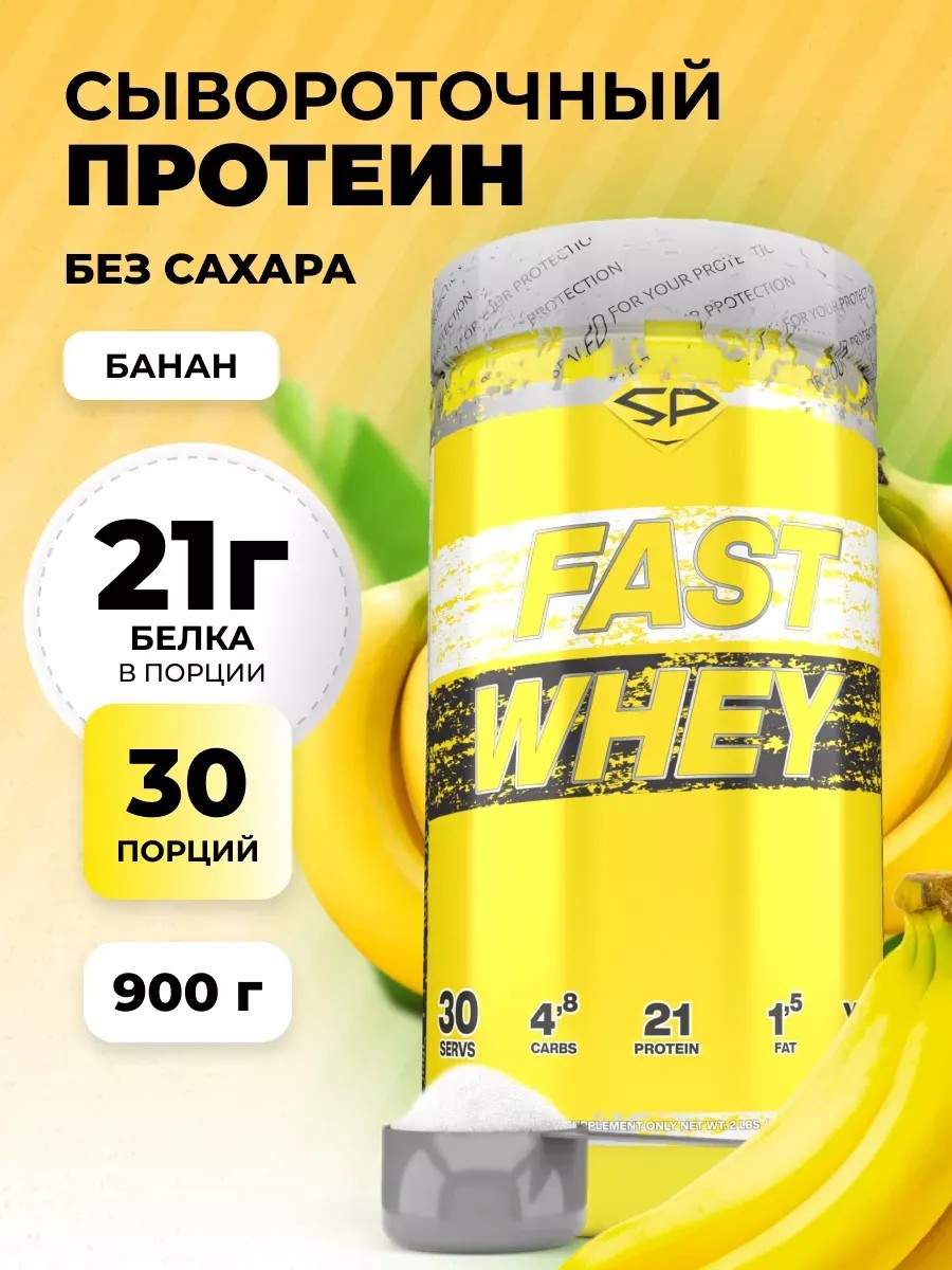 Протеин сывороточный FAST WHEY Без сахара 900г Банан