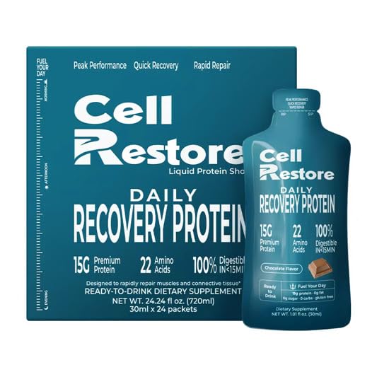 DIGEST 4X FASTER THAN WHEY PROTEIN: Cell Restore nano hydrolyzed collagen protein digested completely within 15 minutes. The same amount of whey protein from a leading brand took over 60 minutes to digest completely. EXTREMELY PORTABLE PACKETS: Ready to drink, with no mixing required. Throw a packet in your backpack, purse, pocket, for any time you need a quick nourishing protein snack or fuel for pre-workout, during, or post-workout. Take one packet immediately after physical activity or workouts. CONTAINS 22 AMINO ACIDS: Fortified to be a complete protein unlike most other collagen peptides and hydrolyzed collagen, to help support muscle repair and strength. Fortified Amino Acids: Glutamine, Cysteine, Histidine, Methionine, Threonine, Taurine Tryptophan. SUGAR FREE GLUTEN FREE: Our blue berry flavored protein packets have 0g of carbohydrates, and are 100 gluten free, sugar free, fat free, and lactose free. Contains NO banned substances and no GMOs. LIQUID PROTEIN SHOT: Each power shot has 15g of Nano-Hydrolyzed Collagen protein. in a convenient 1 fluid ounce liquid protein shot that you can grab for on the run. Cell Restore is designed to make your fitness journey more convenient one sip at a time.
