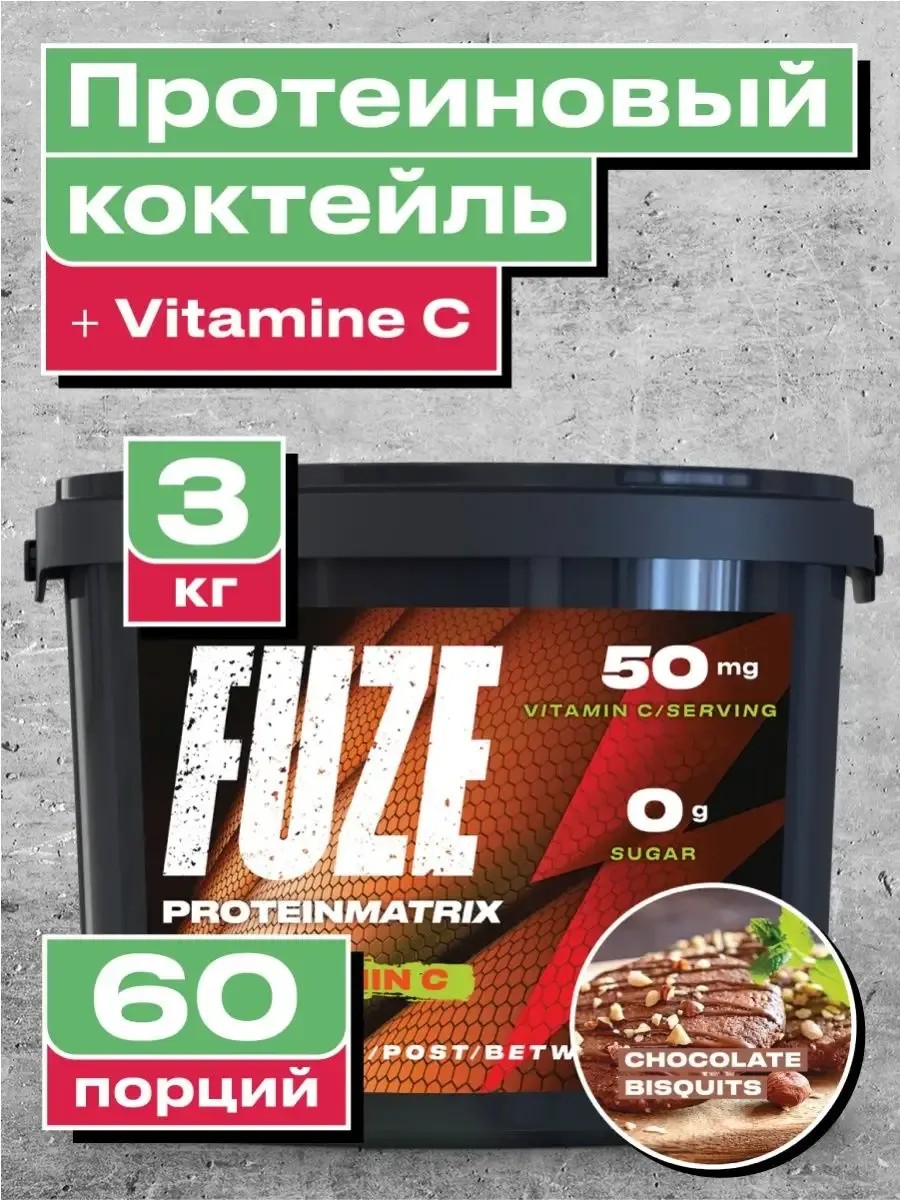 Вам нужен протеин для набора веса? Тогда наш белково-углеводный протеиновый коктейль без сахара – идеальный выбор для быстрого набора мышечной массы. Наш протеиновый порошок со вкусом шоколада содержит 48% белка на порцию (24 грамма). 1 порция составляет 50 грамм (2 мерные ложки). Состав протеиновой матрицы включает: • концентрат сывороточного белка (ксб 80% белка, whey protein )- 38%; • концентрат молочных белков (казеин) – 19%; • яичный белок – 19%; • изолят соевого белка – 19%; • пшеничный белок – 5%. Способ применения: смешайте 1 порцию сухого продукта с 300–400 мл обезжиренного молока, воды или другого напитка в шейкере. Используйте 1 порцию продукта 2–3 раза в день между приёмами пищи для дополнительного источника белка. После тренировки употребляйте 1 порцию напитка сразу после тренировки для ускорения восстановления. Шоколадный протеин без сахара подходит как для мужчин, так и для женщин. Мы предлагаем высококачественные компоненты и сочетание витаминов и минералов. Спортивная добавка Fuze/Фьюз — это протеиновая еда для эффективного наращивания мышечной массы. Высокое качество протеинового порошка в сочетании с витамином C обеспечивает эффективную поддержку здоровья и восстановление мышц после тренировок. Если вам нужен качественный и вкусный протеин для набора массы, наша смесь изолятов и концентратов растительных и животных белков точно соответствует вашим ожиданиям. Производитель PURE — с заботой о вашем здоровье и фигуре!
