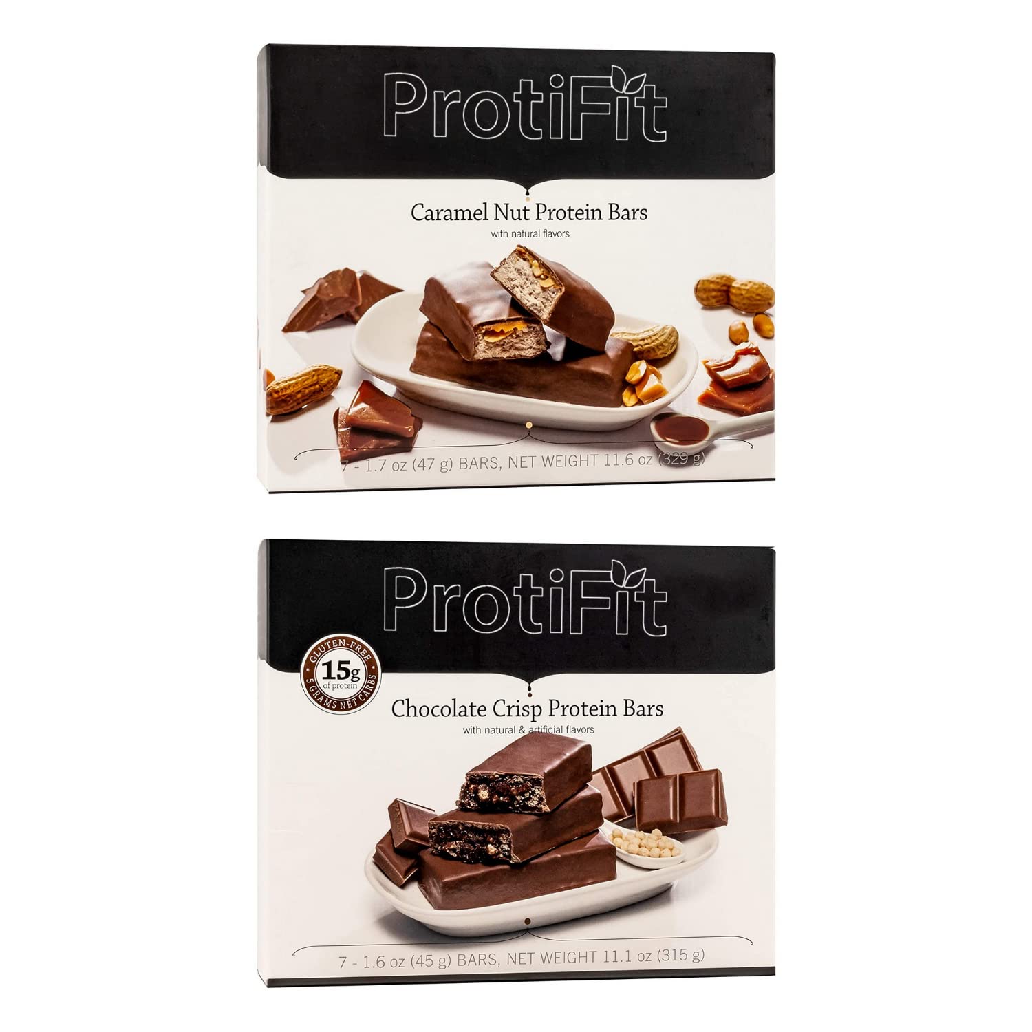 PROTIFIT - Low Calorie Caramel Nut & Chocolate Crisp Protein Bar 2 Pack High Protein 15g Protein Low Carb Low Sugar Ideal Protein Compatible 7 Servings Per Box (2 Pack)