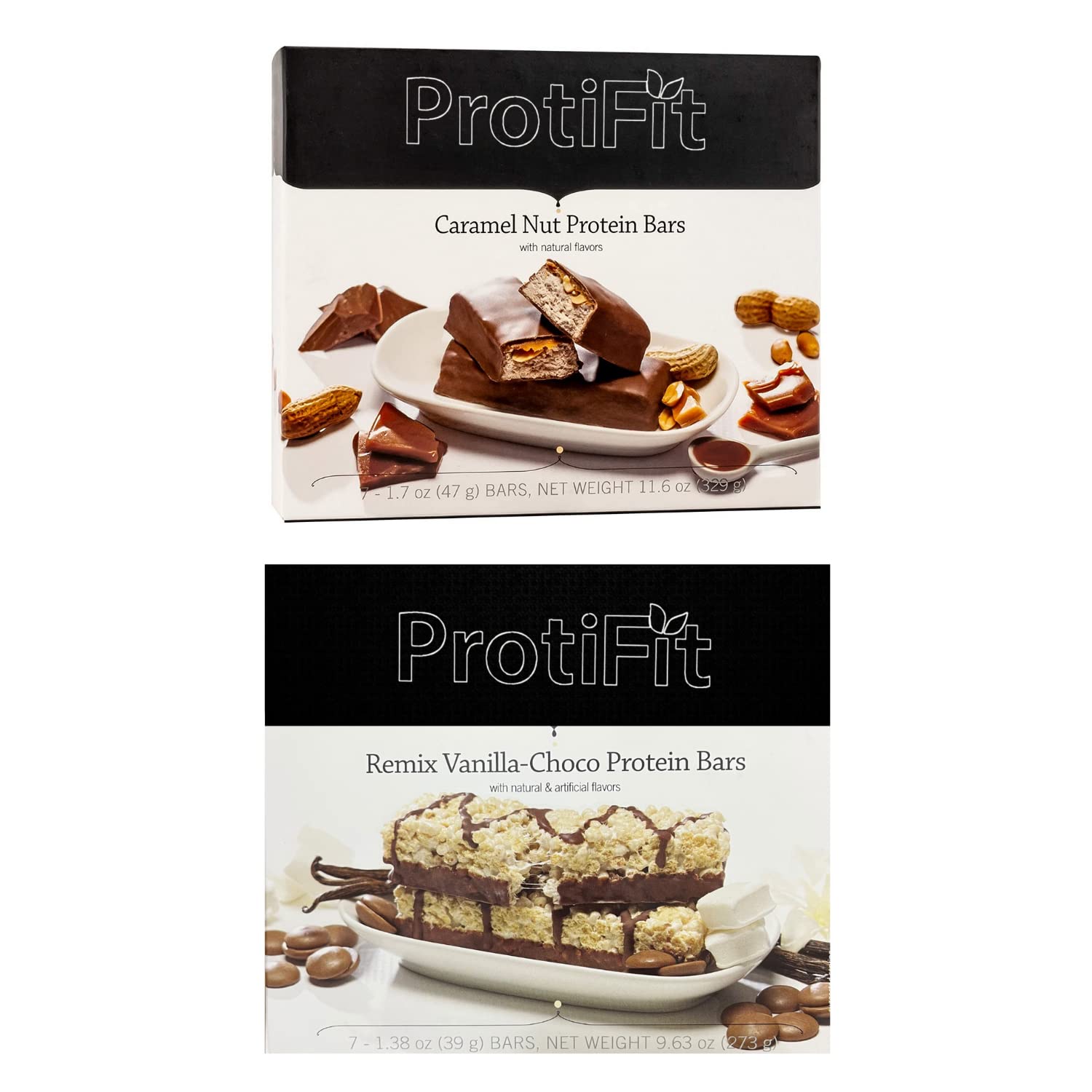 PROTIFIT - Low Calorie Caramel Nut & Remix Vanilla-Choco Protein Bar 2 Pack High Protein 15g Protein Low Carb Low Sugar Ideal Protein Compatible 7 Servings Per Box (2 Pack)