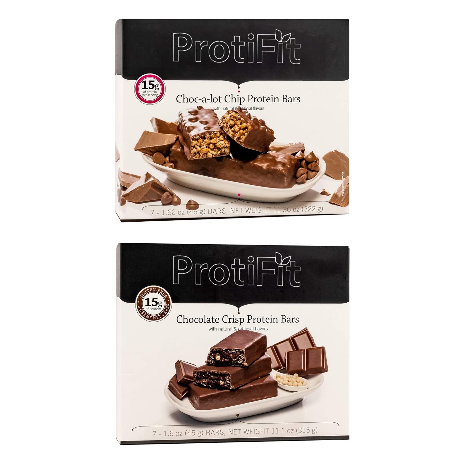 PROTIFIT - Low Calorie Choc-A-Lot Chip & Chocolate Crisp Protein Bar 2 Pack High Protein 15g Protein Low Carb Low Sugar Ideal Protein Compatible 7 Servings Per Box (2 Pack)