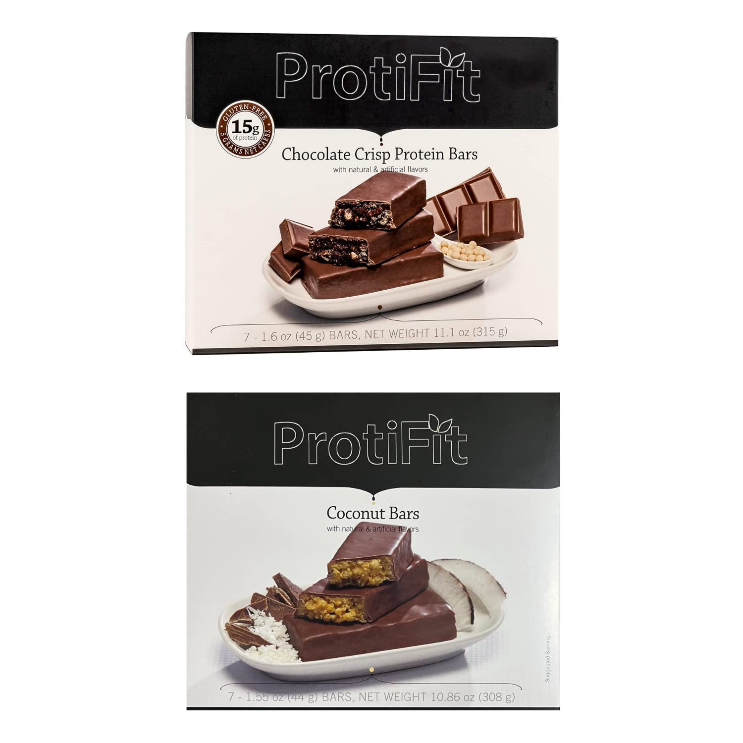 PROTIFIT - Low Calorie Chocolate Crisp & Coconut Protein Bar 2 Pack High Protein 15g Protein Low Carb Low Sugar Ideal Protein Compatible 7 Servings Per Box (2 Pack)