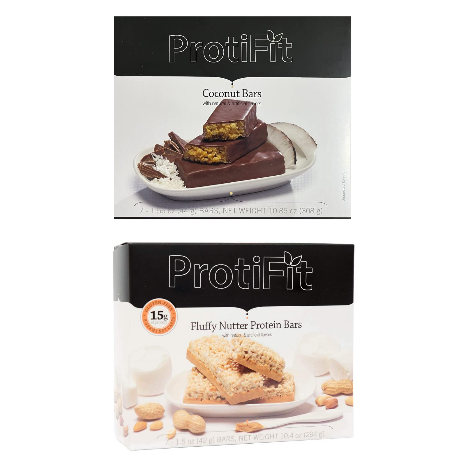 PROTIFIT - Low Calorie Coconut Crunch & Fluffy Nutter Protein Bar 2 Pack High Protein 15g Protein Low Carb Low Sugar Ideal Protein Compatible 7 Servings Per Box (2 Pack)